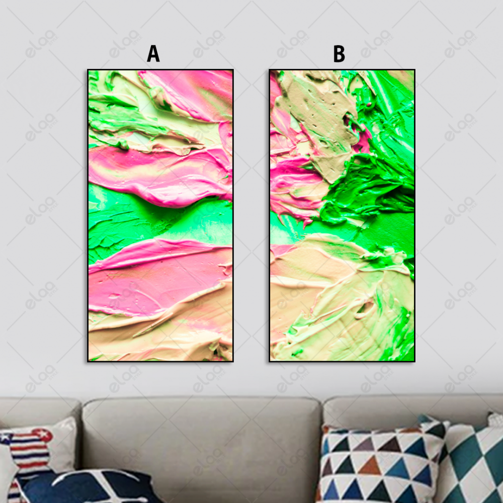 Tableaux d'art abstrait dans les tons vert et rose - E2P1085