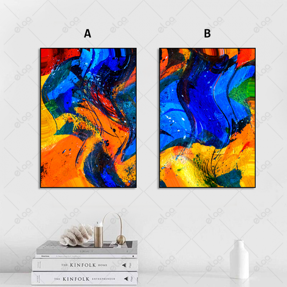 Tableaux d'art abstrait dans les tons de jaune et de bleu - E2P1247