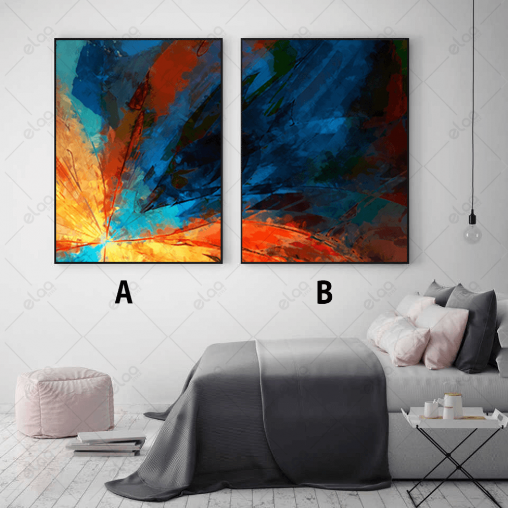 Tableaux d'art abstrait de couleurs jaune, rouge et bleu - E2P0060