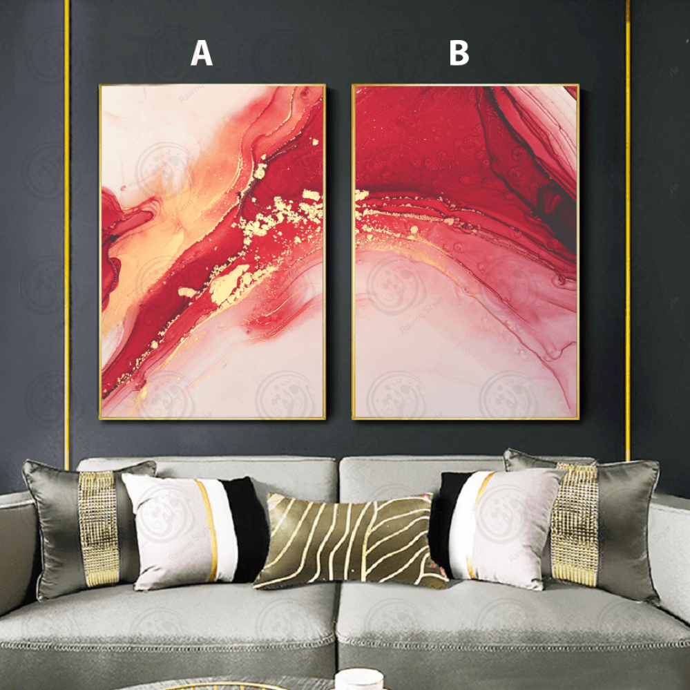 Panneaux d'art abstrait vagues et tourbillons transparents en or rouge - E2PR-20168