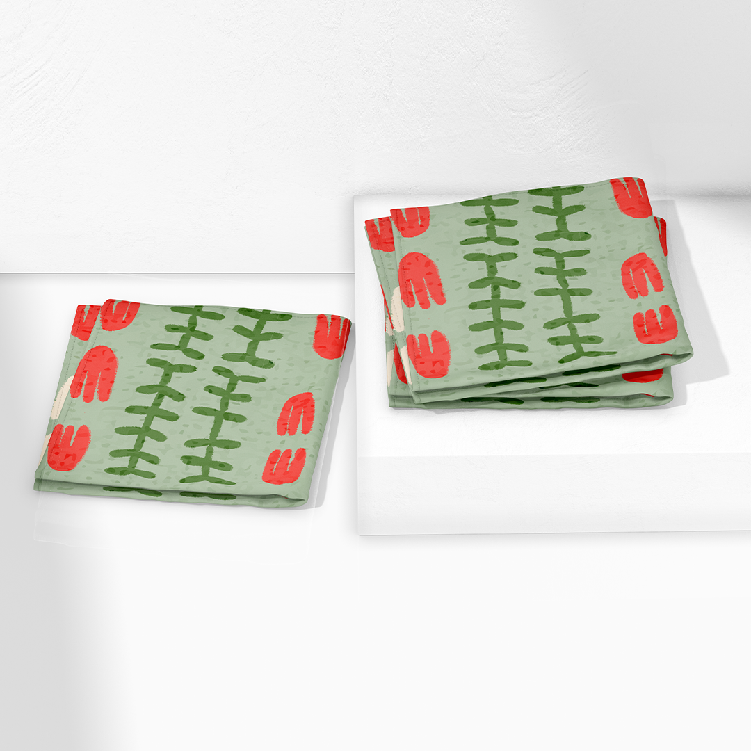 Serviettes cocktail - Motif sans couture Fond rouge corail et vert jaunâtre -m10072
