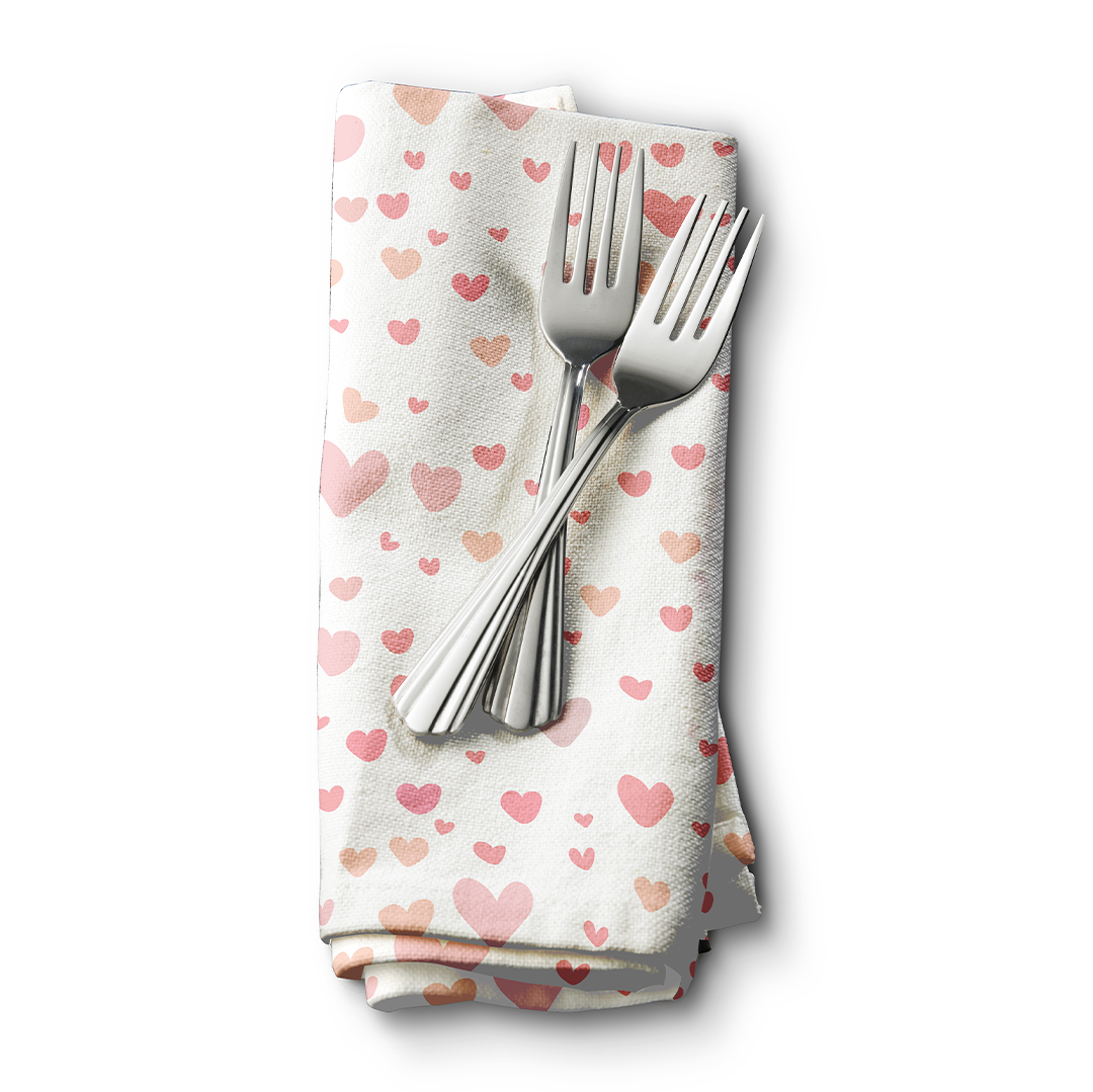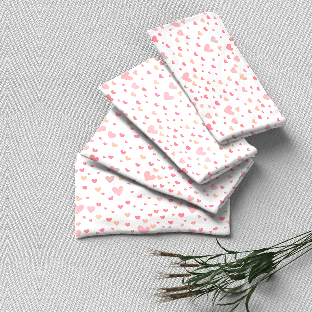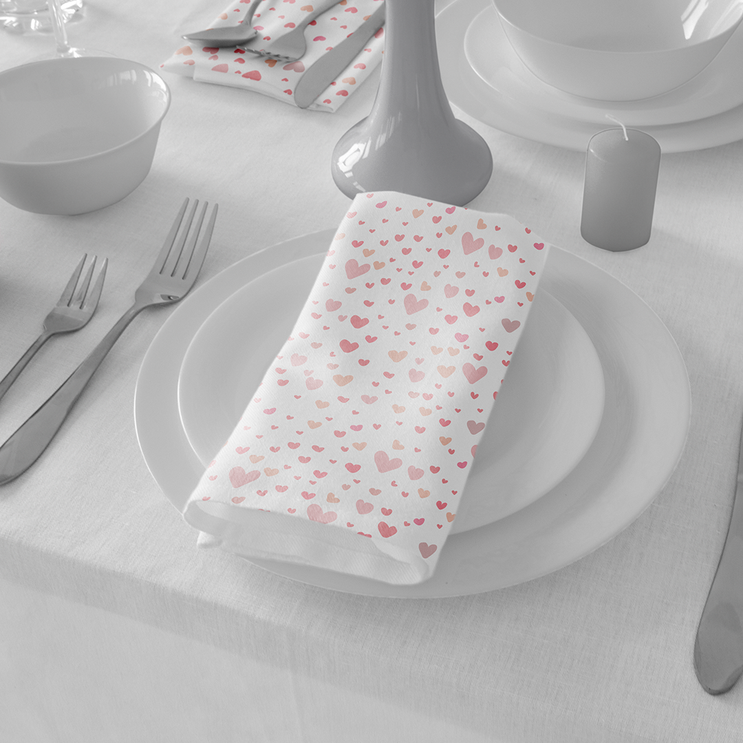 Serviettes de table - Motif coeur mignon - blanc - rose - M10101