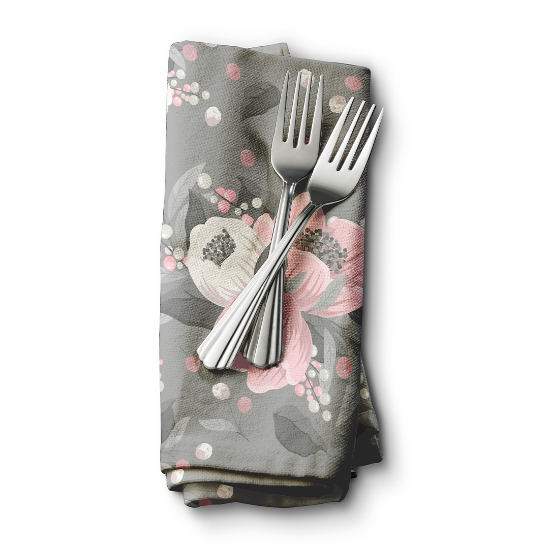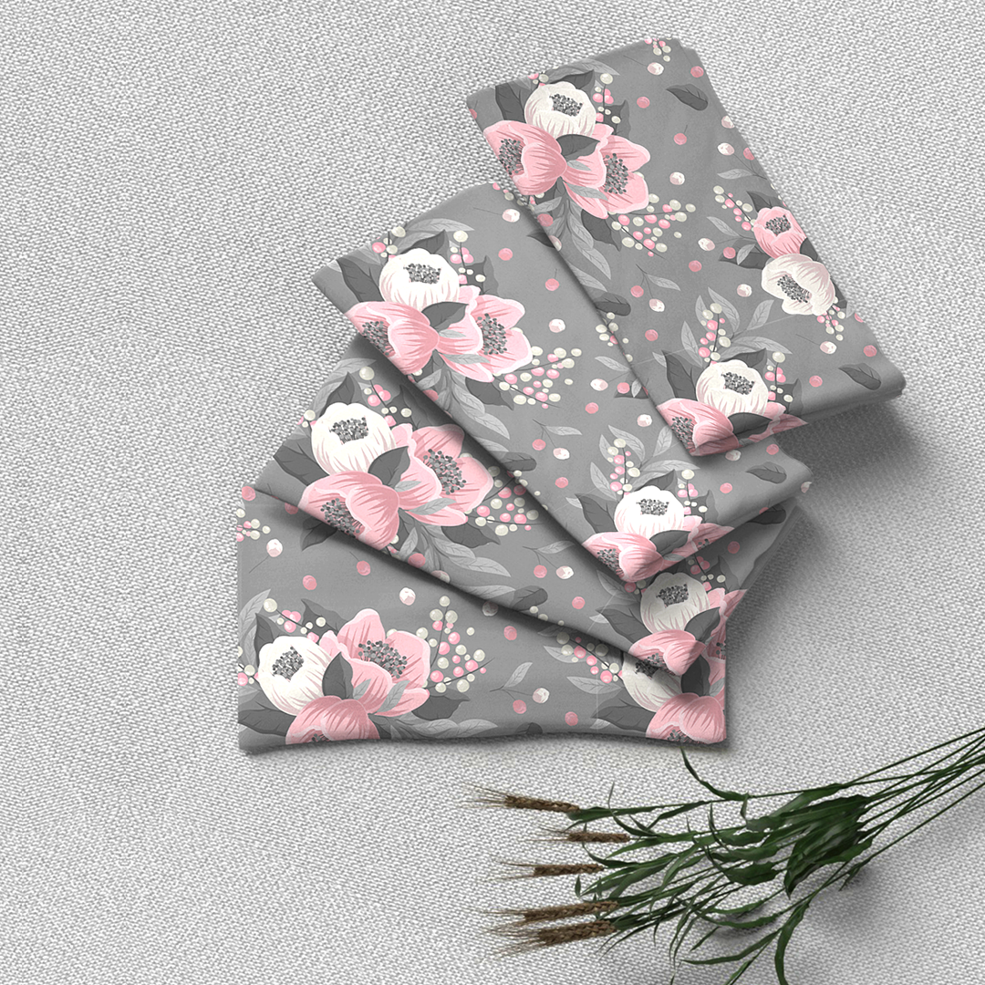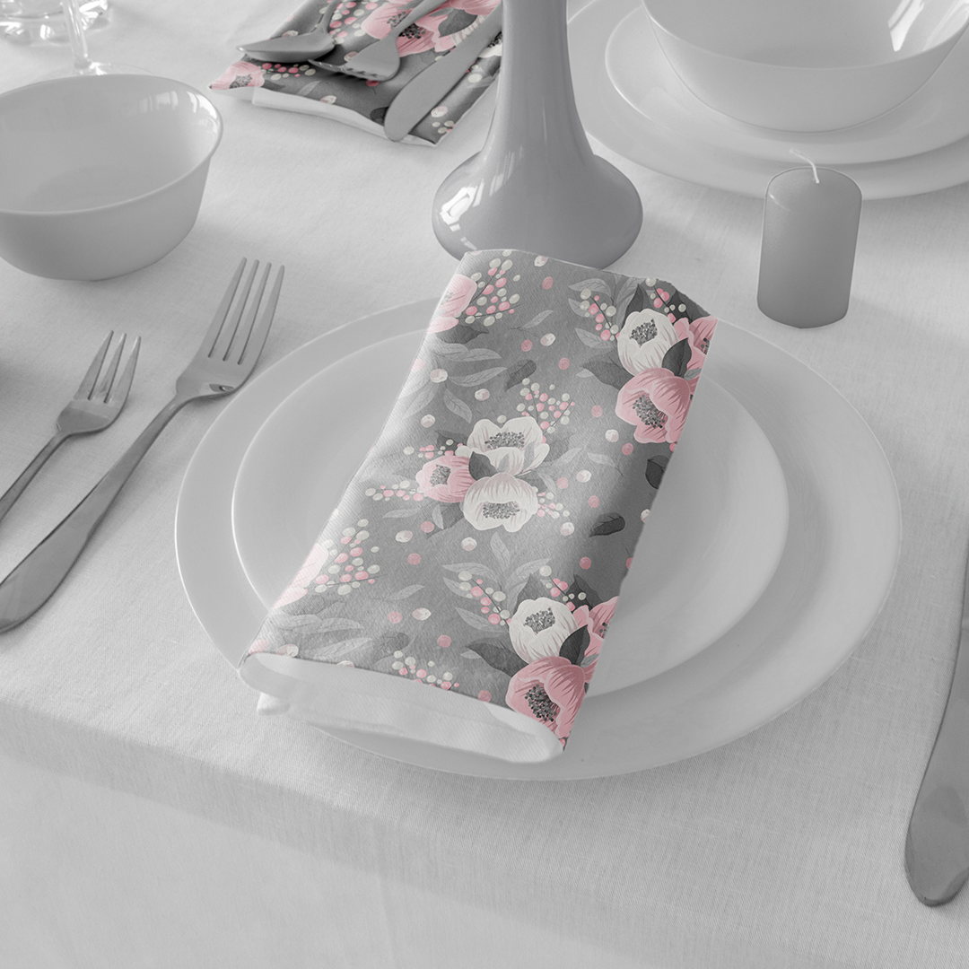 Serviettes de table - motif floral sans couture fond gris fleurs roses -m10028