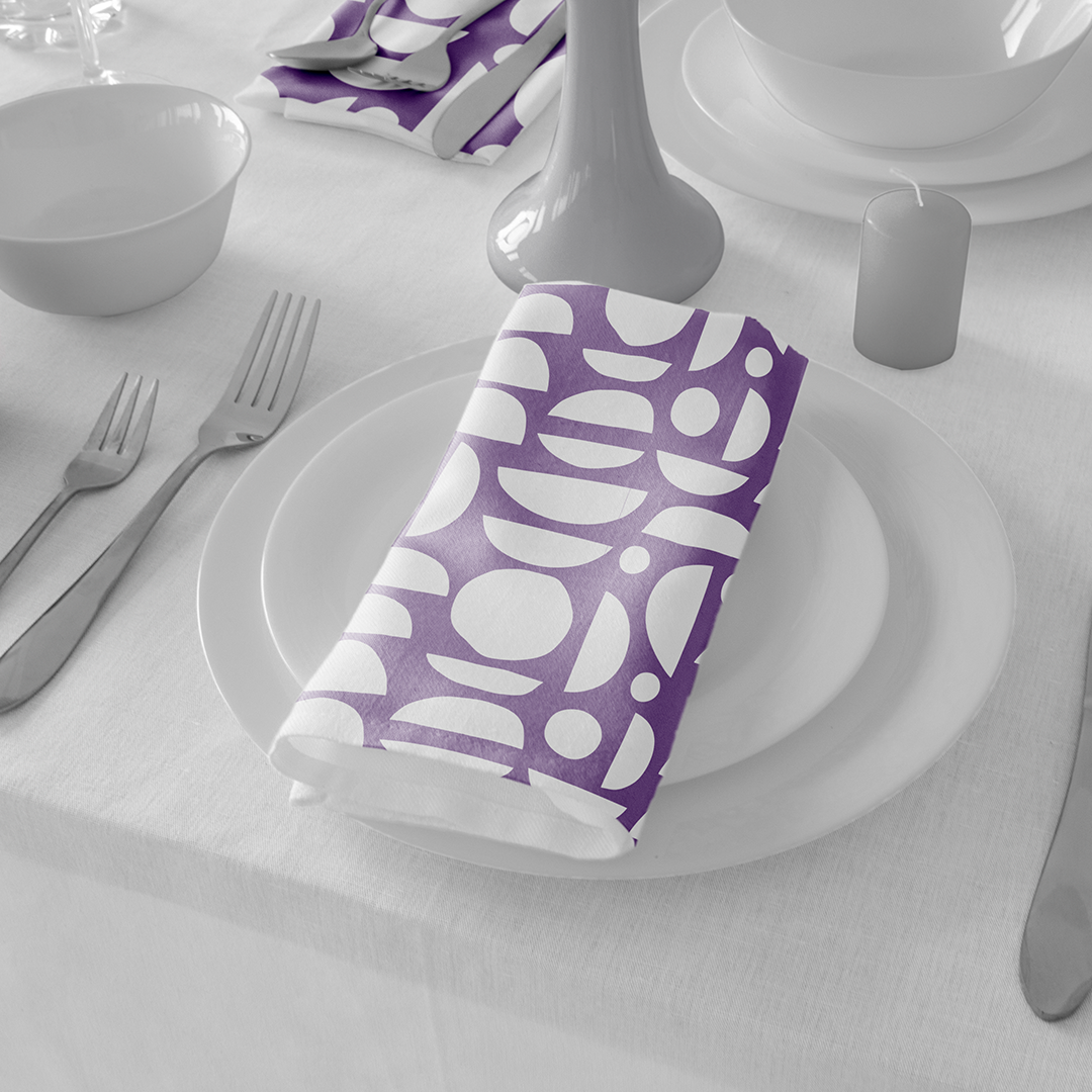 Serviettes de table - Formes de trait de pinceau de ligne élégante minimale et ligne dans des couleurs nude Violet et blanc -m10020