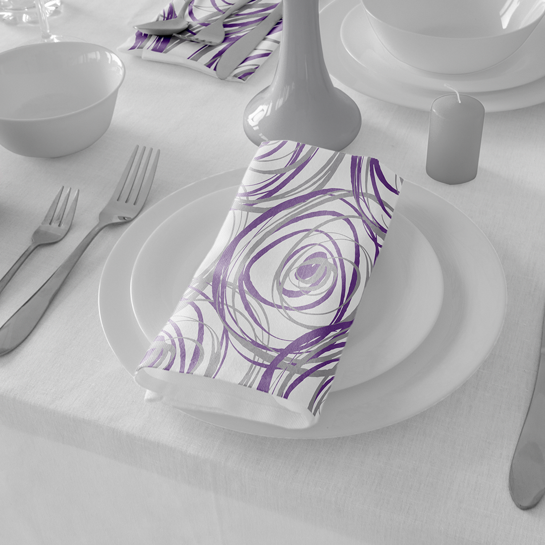 Serviettes de table - lignes à main levée violettes et grises isolées sur fond blanc -m10026