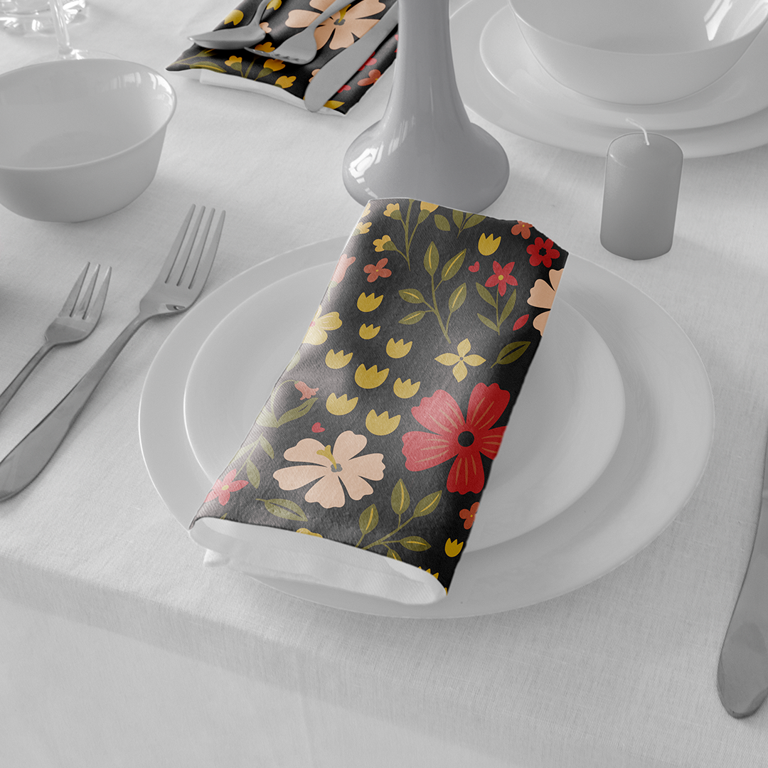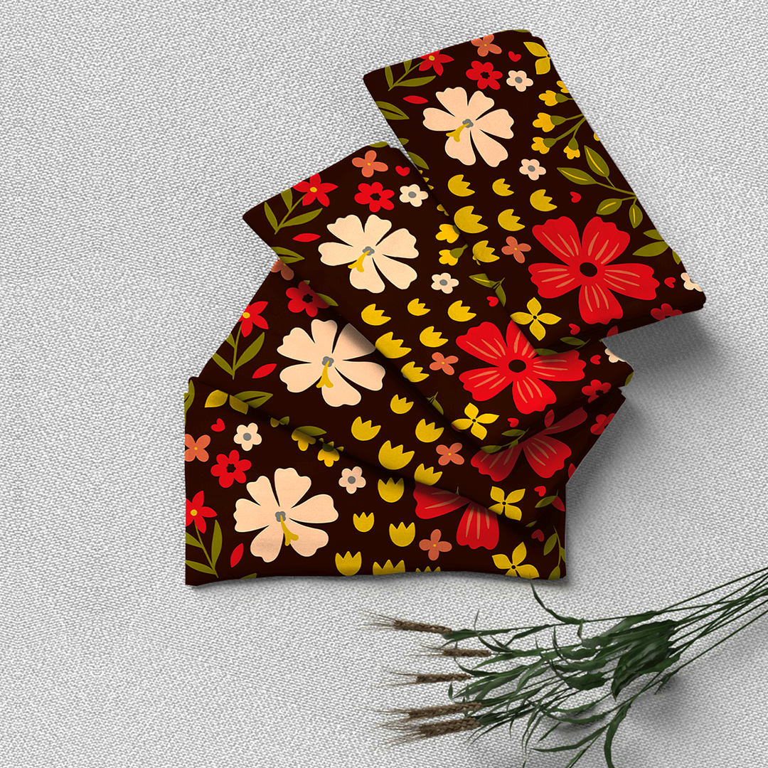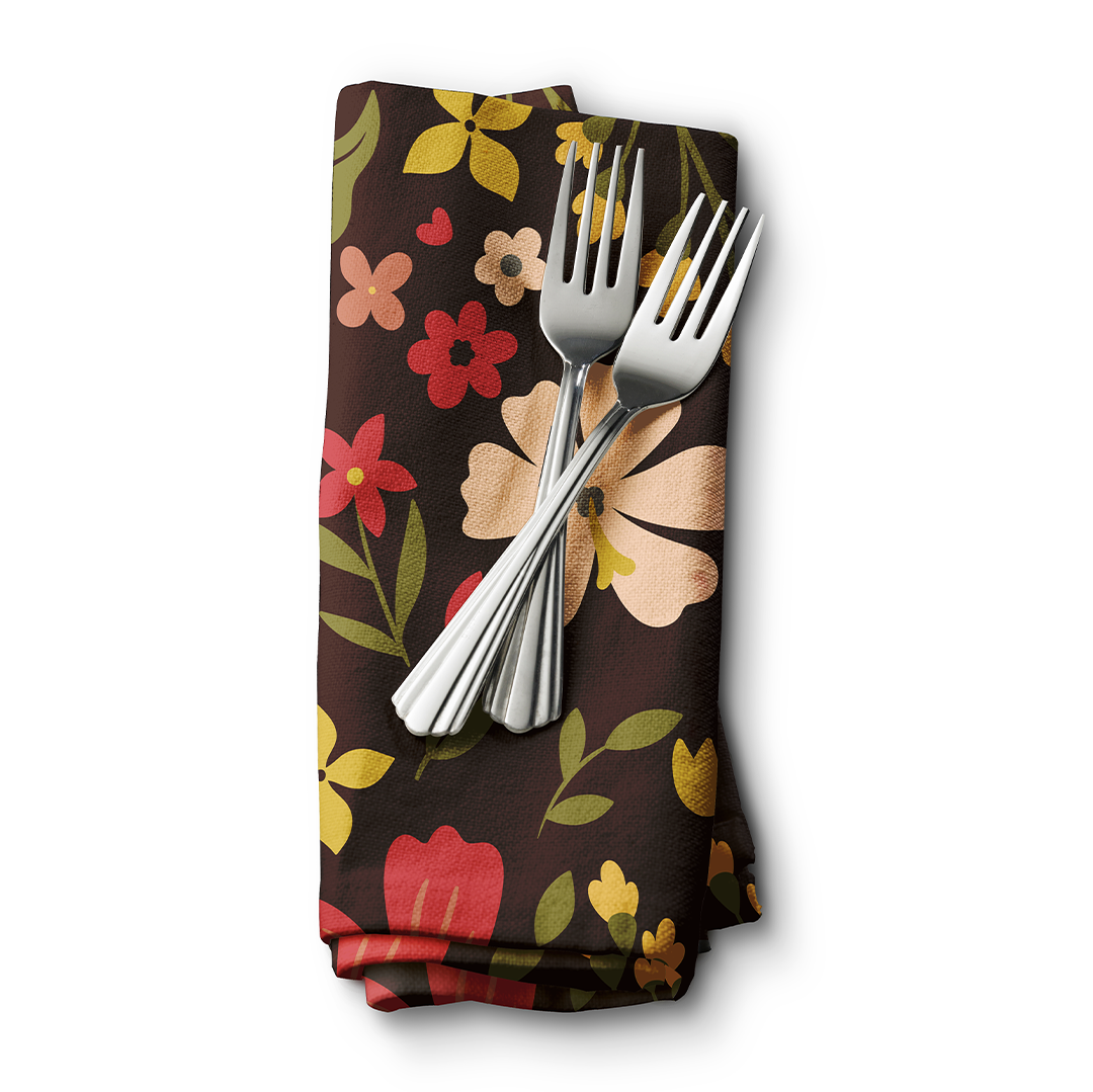 Serviettes de table - Motif simple sans couture avec des fleurs sur fond marron foncé - M10114