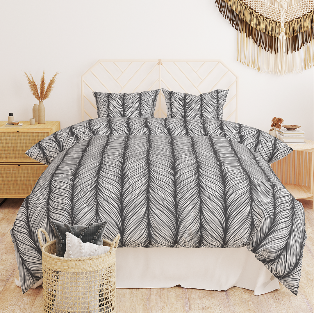 - Notre housse de couette comporte une fermeture éclair discrètement dissimulée au pied et des attaches de couette à l'intérieur de chaque coin. Votre design sélectionné sera présenté à la fois sur le devant et le dos.