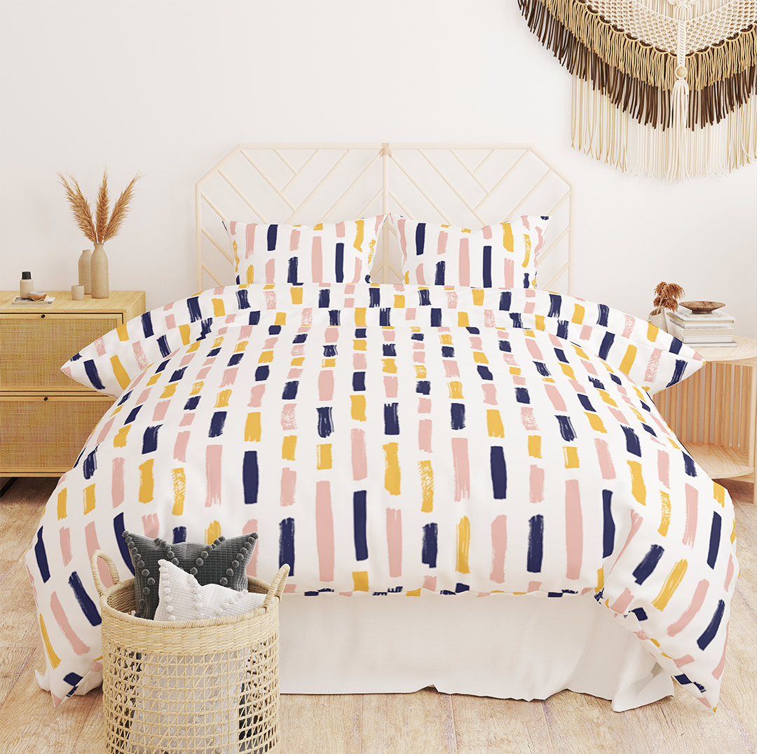 - Notre housse de couette comporte une fermeture éclair discrètement dissimulée au pied et des attaches de couette à l'intérieur de chaque coin. Votre design sélectionné sera présenté à la fois sur le devant et le dos.