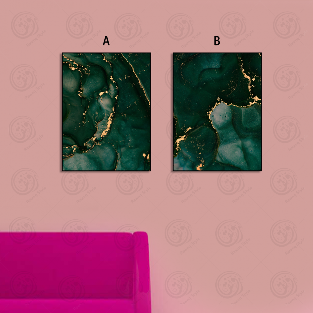 Peintures d'art abstrait vert et tourbillons d'or - E2PR-20299
