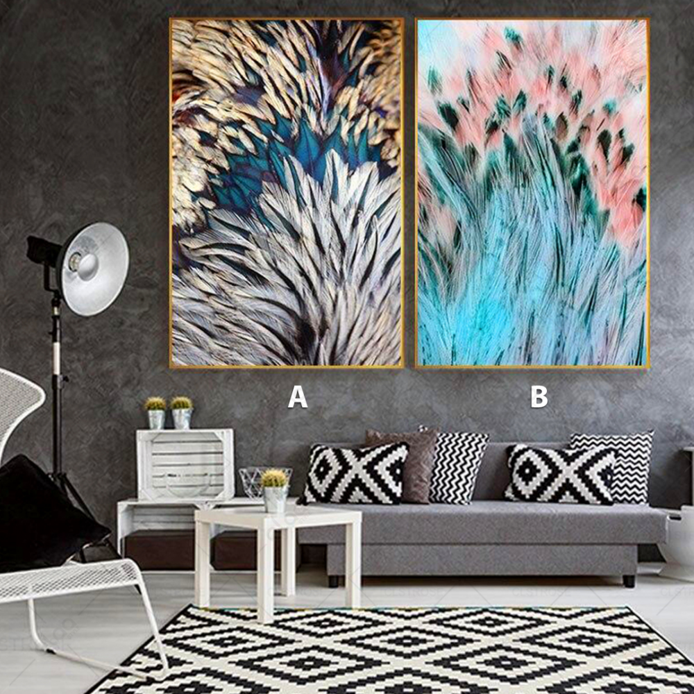 Peintures de paysage de plumes aux couleurs turquoise, rose et blanc - E2P0016