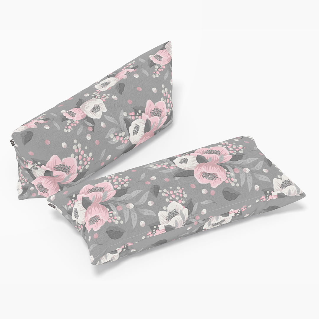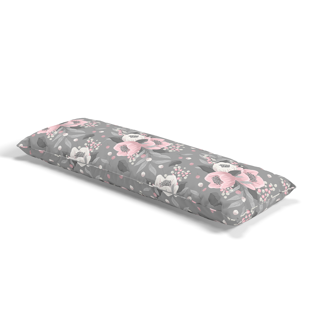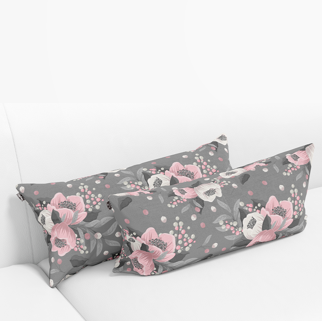 Coussins lombaires longs - motif floral sans couture fond gris fleurs roses -m10028