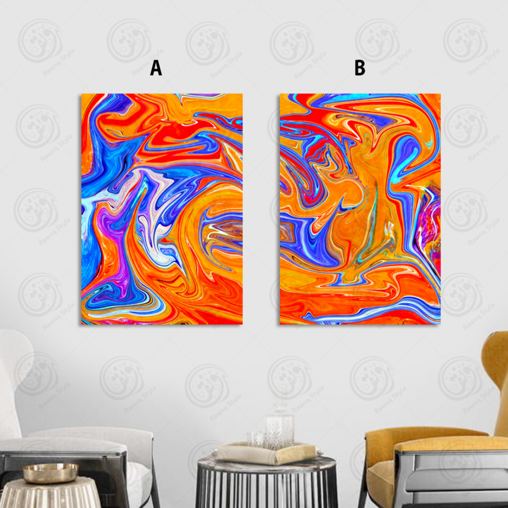 Peintures d'art abstrait liquide orange et bleu - E2PR-20338
