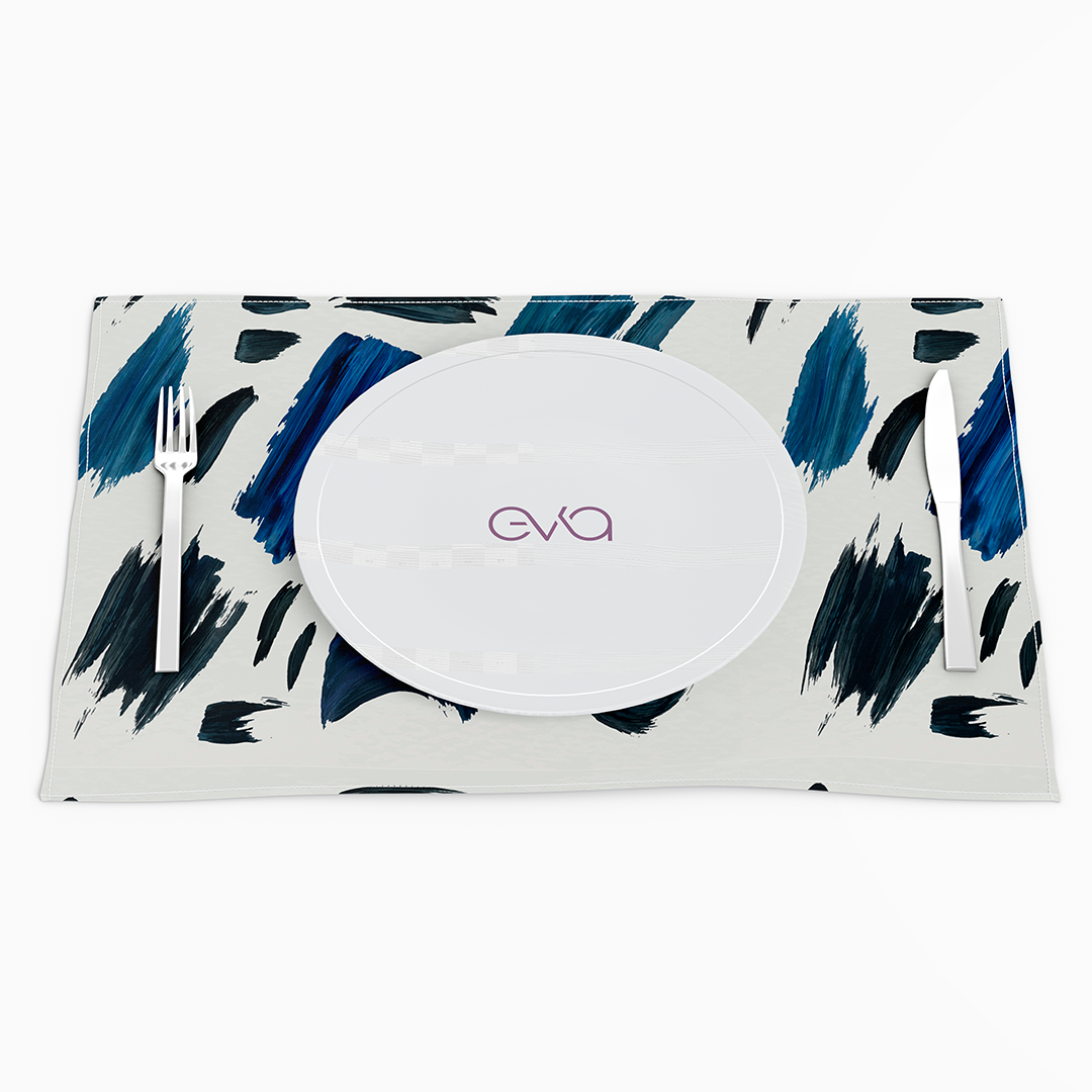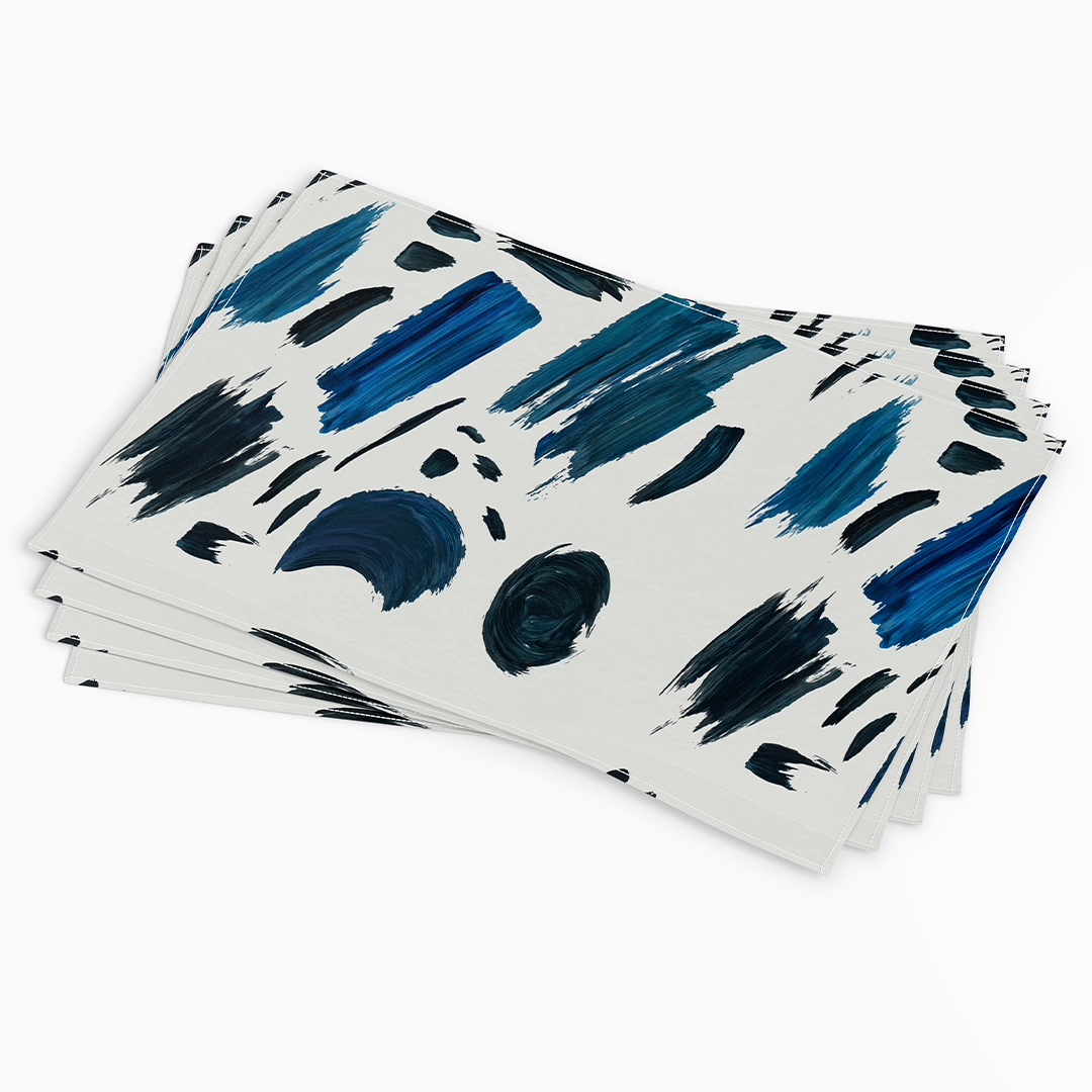 Sets de table - Coups de pinceau peinture acrylique bleu fond beige - m10076