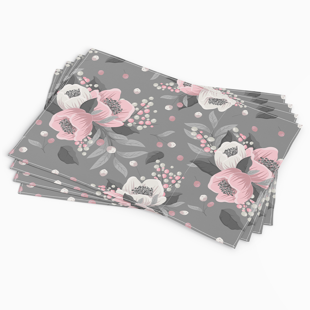Sets de table - motif floral sans couture fond gris fleurs roses -m10028