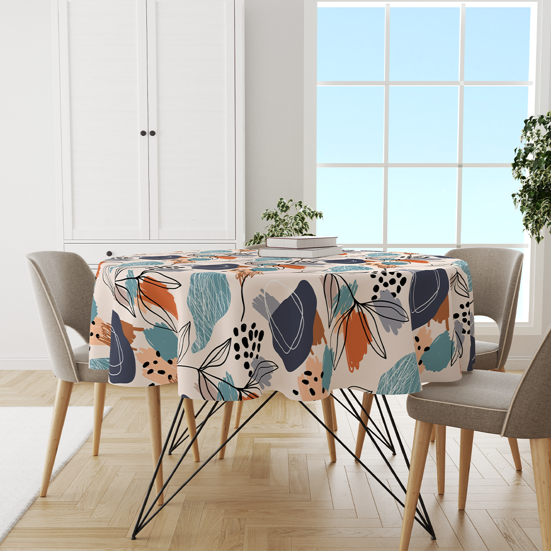 Nappes rondes - Motifs abstraits sans couturesturquoise orange beige -m10041