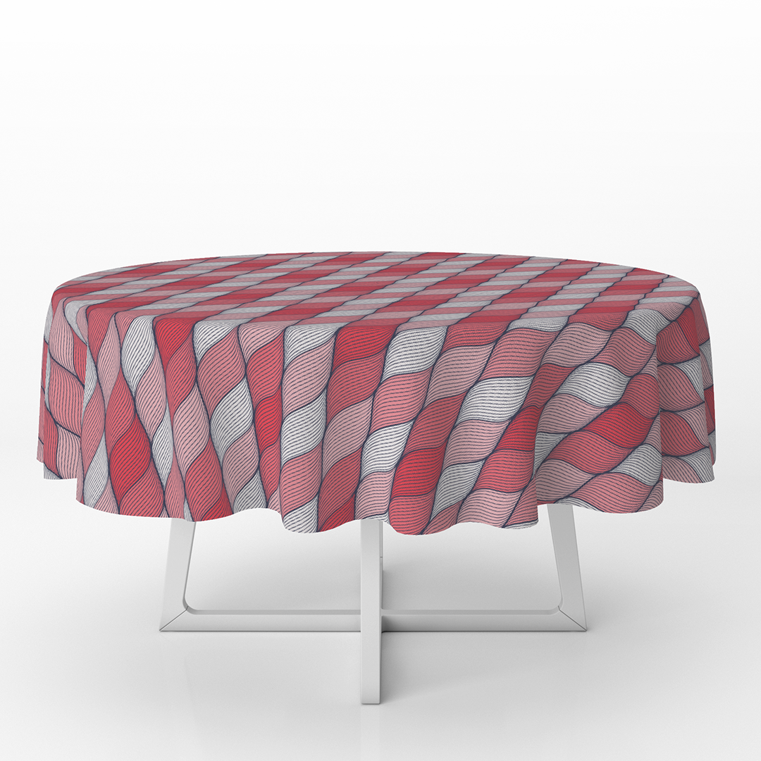 Nappes rondes - Motifs abstraits lignes ondulées sans couture - Rose uni - Gris - M10127