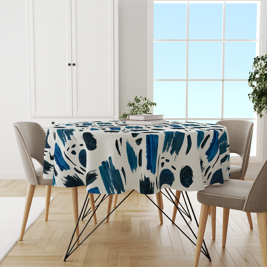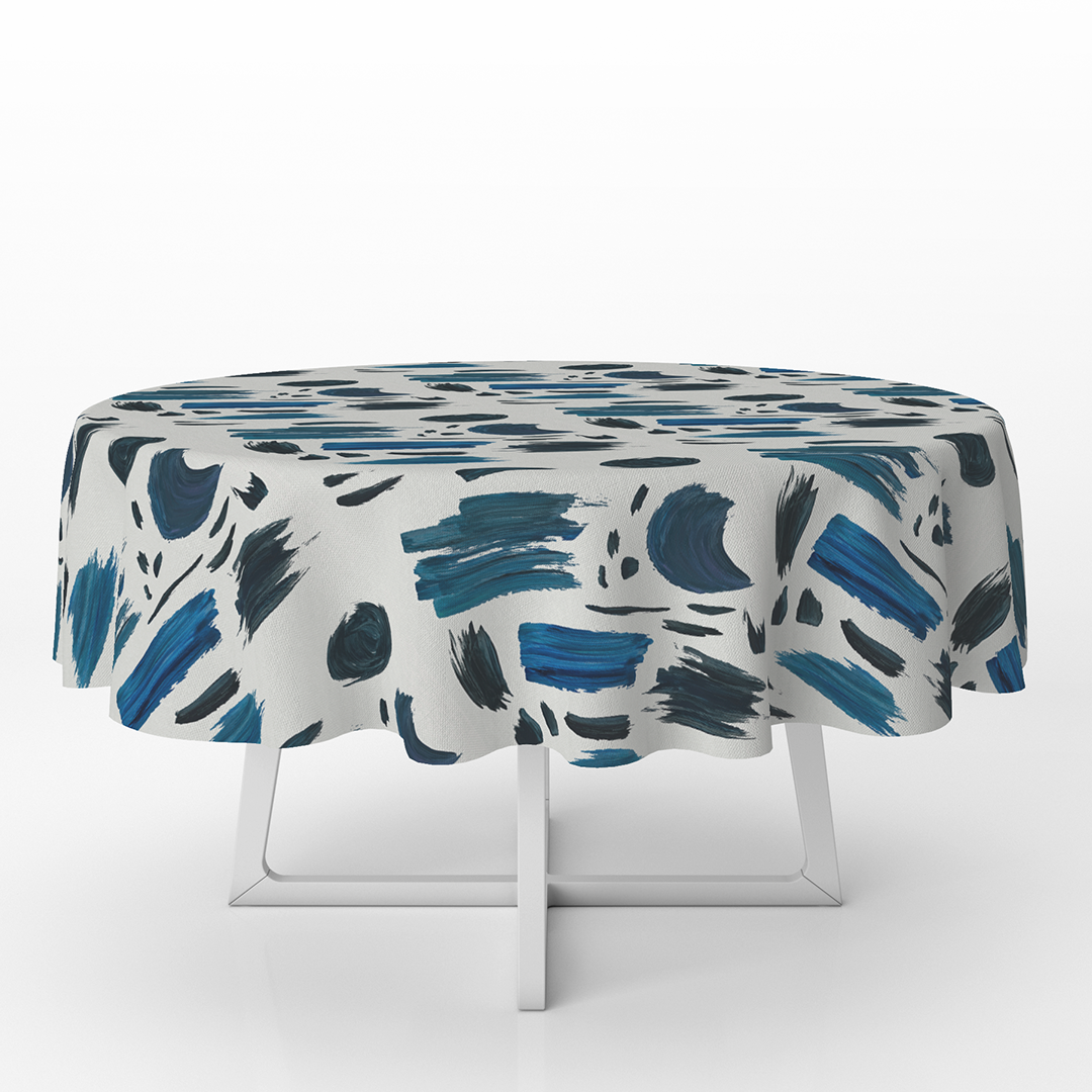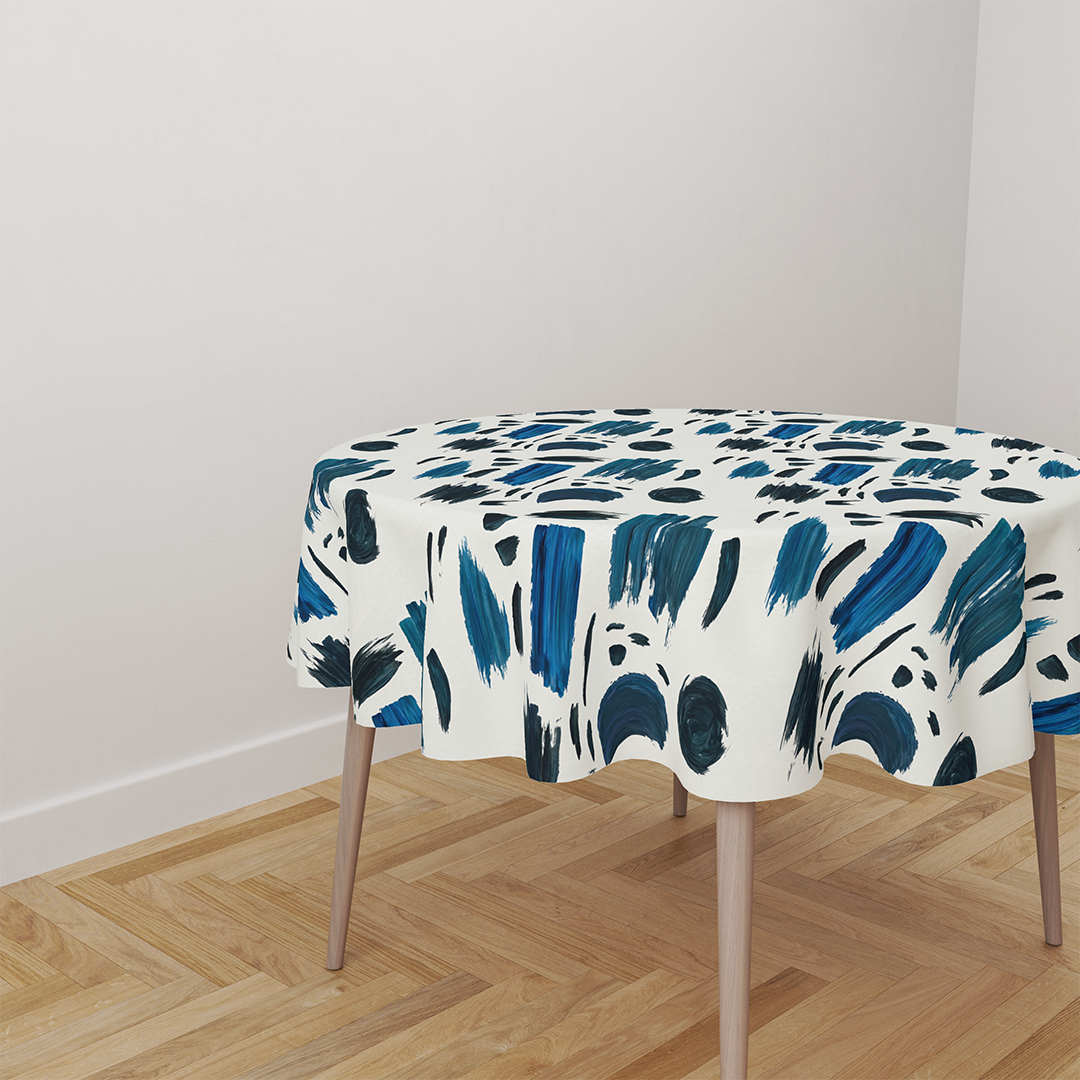 Nappes rondes - Coups de pinceau peinture acrylique bleu fond beige - m10076