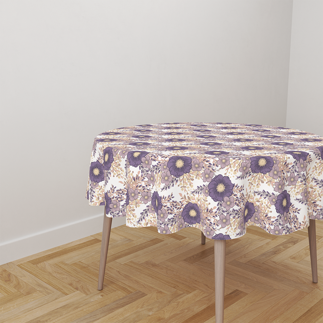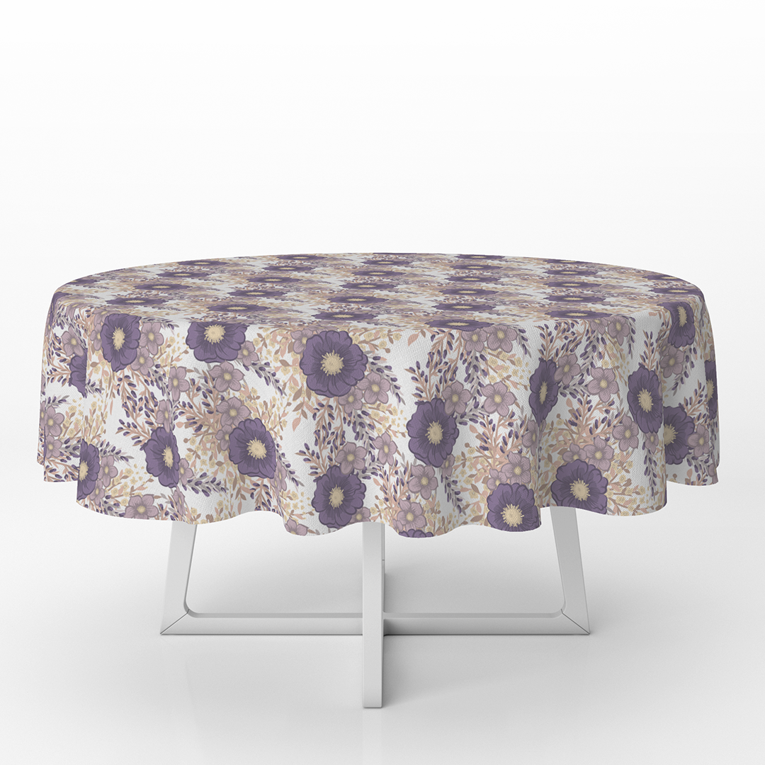 Nappes rondes - Bouquet de fleurs avec motif sans couture - Violet grisâtre - Blanc rose - fond blanc - m10081