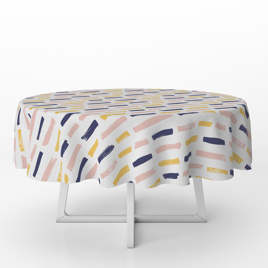 Nappes rondes - Modèle sans couture moderne avec des coups de pinceau jaunes, roses, bleus sur fond blanc -m10055