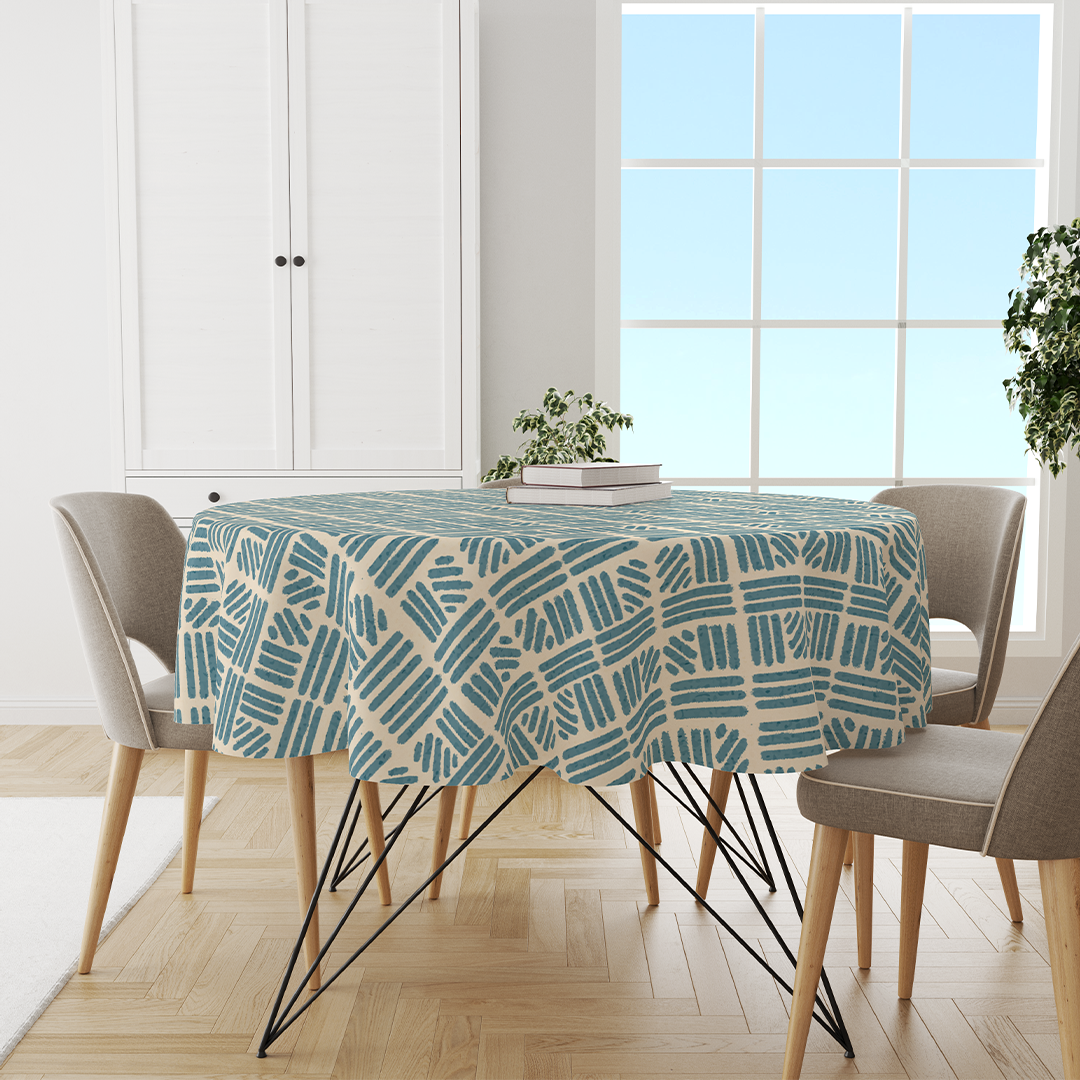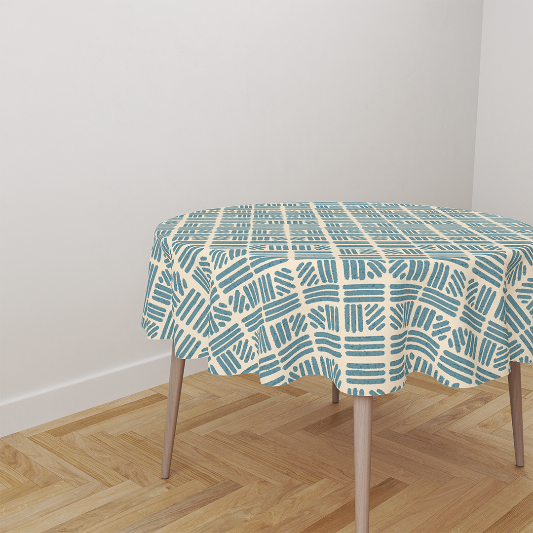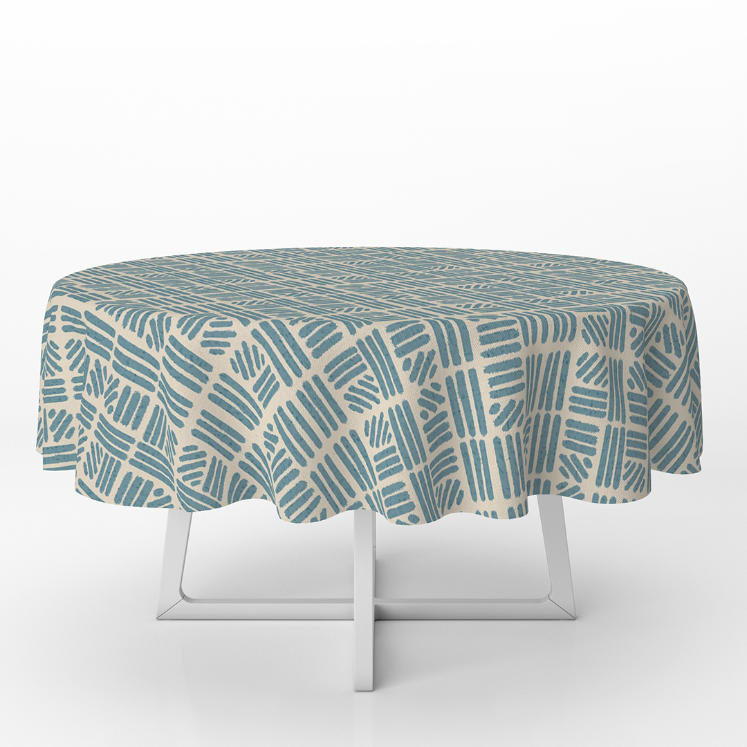 Nappes Rondes - Motif Sans Couture Fond Blanc Antique - Bleu Hippie -m10074