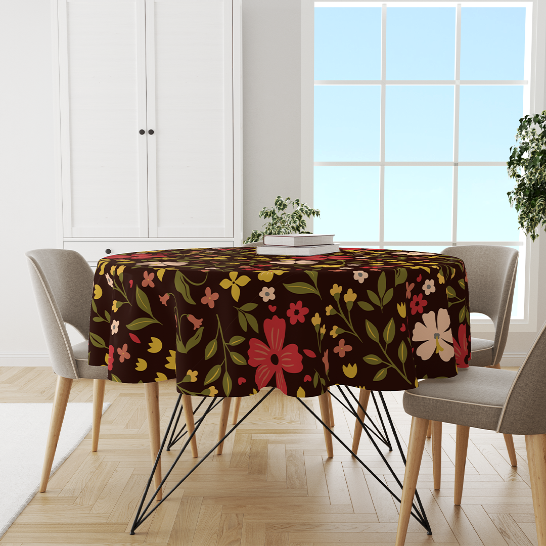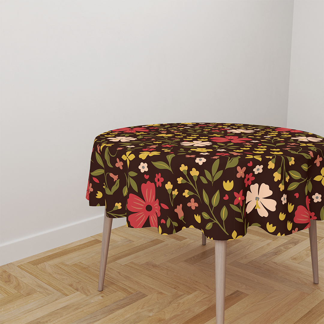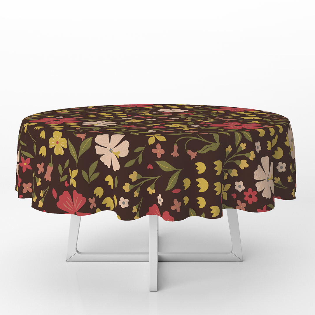 Nappes rondes - Motif simple sans couture avec fleurs sur fond marron foncé - M10114