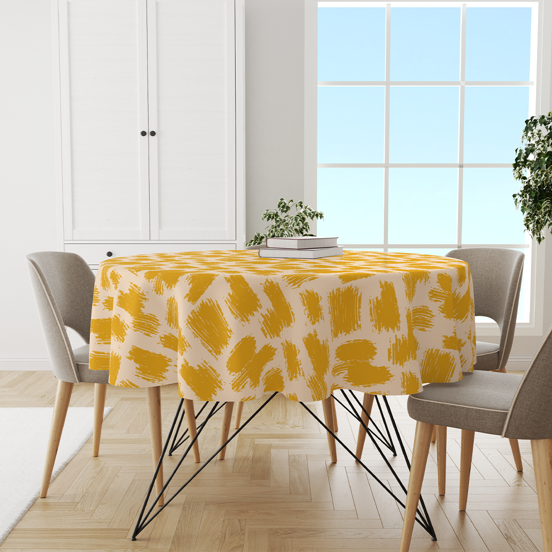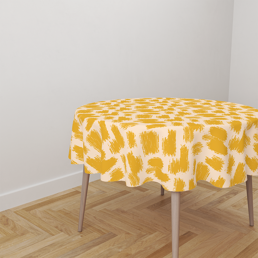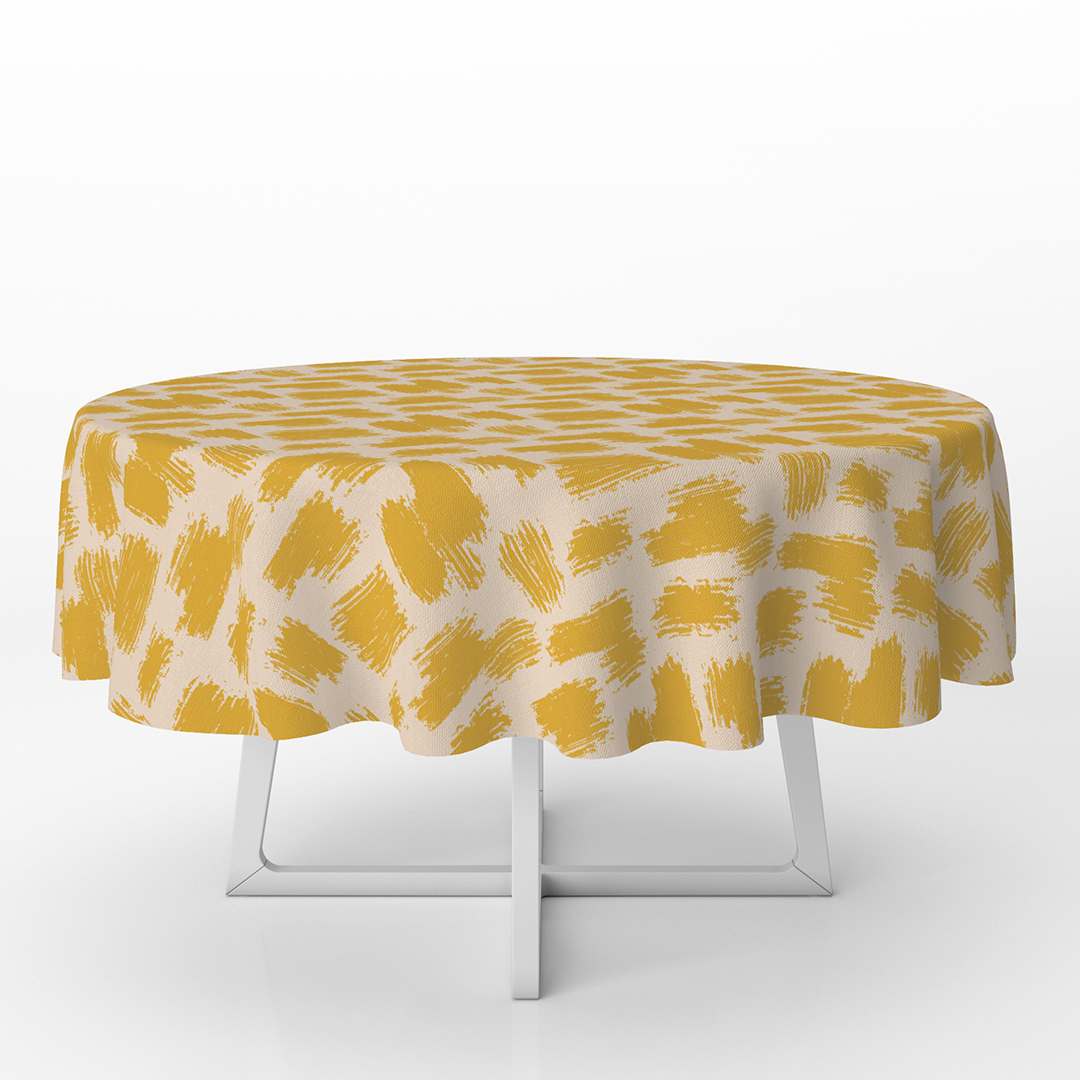 Nappes rondes - Motif divers coups de pinceaux abstraits fond jaune & beige -m10039