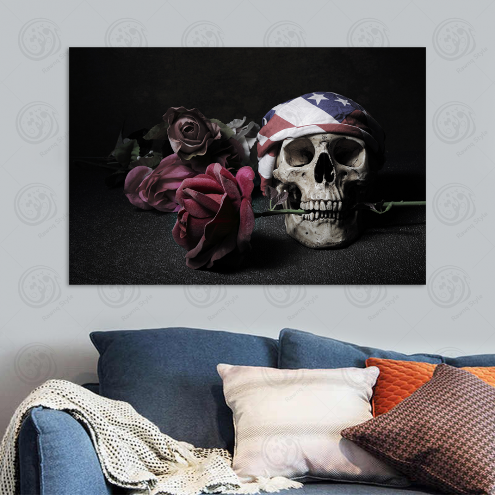 Tableau tête de mort et roses - E1PR-13904