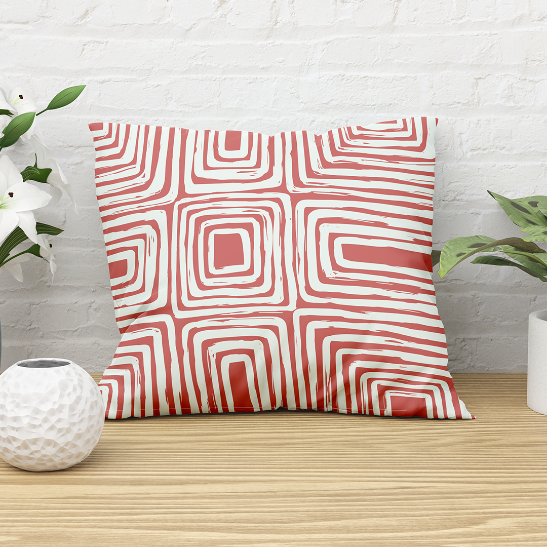 Coussin carré - formes de trait de pinceau ligne élégante minimale et ligne dans des couleurs nude délavé rouge et blanc -m10015
