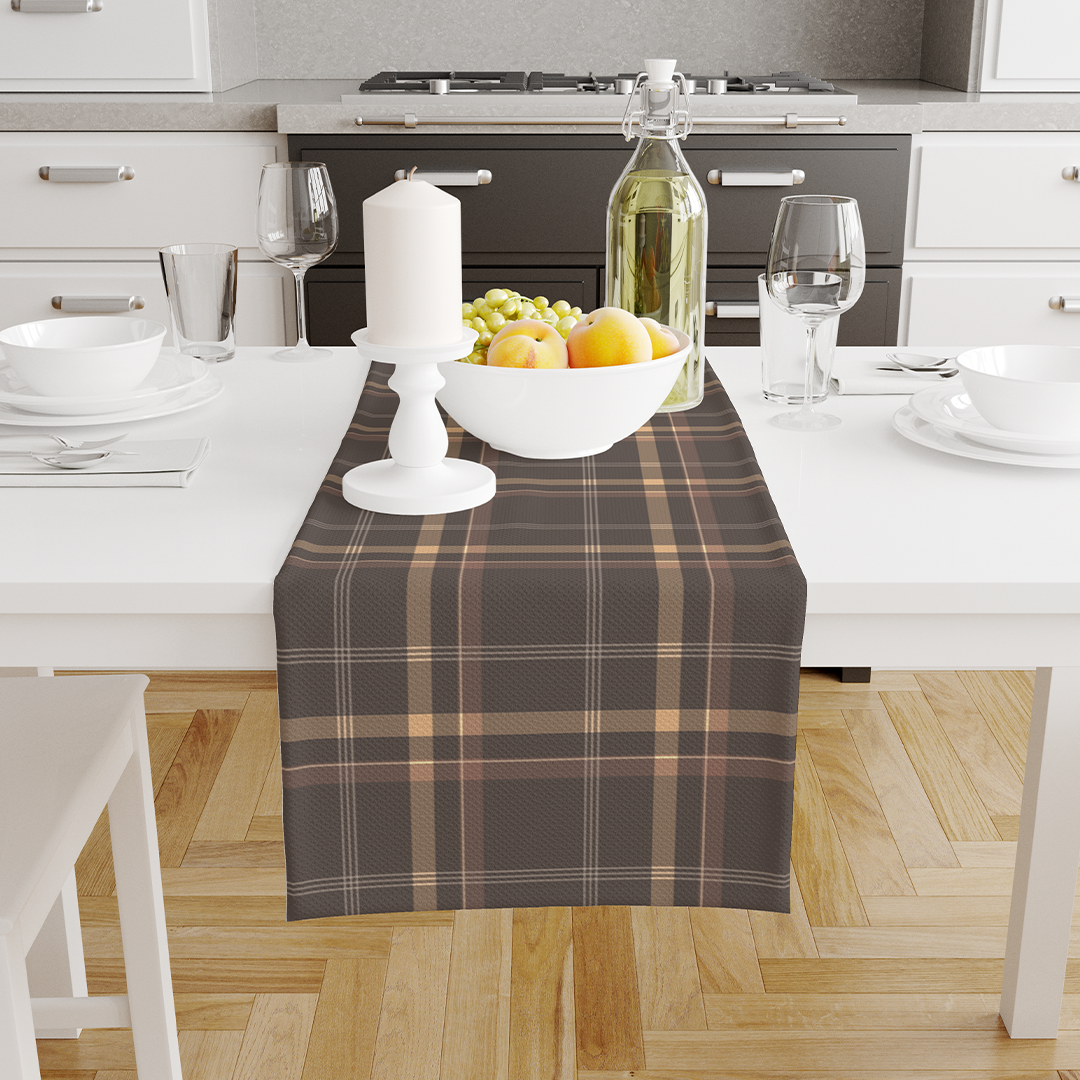 Chemins de table - Motif sans couture à carreaux marron - m10084