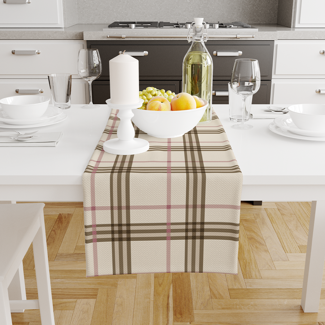Chemins de table - Motif sans couture à carreaux marron - m10087