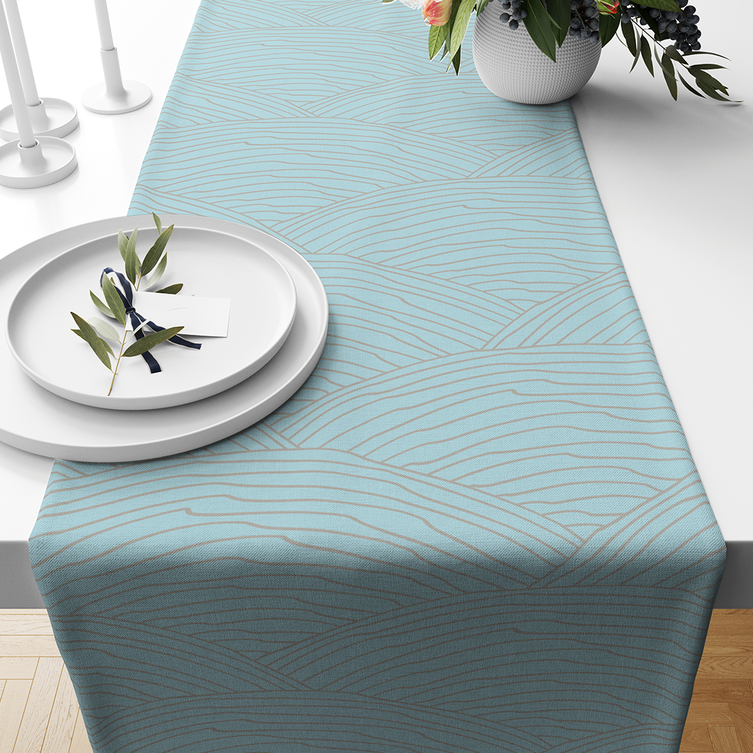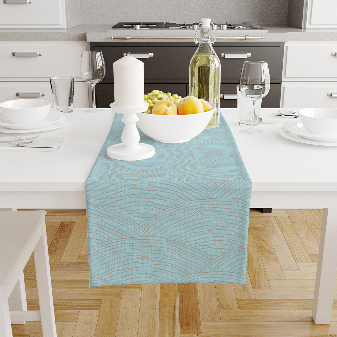 Chemins de table - Modèle sans couture de vagues décoratives - Bleu corail - Gris cendré - M10123