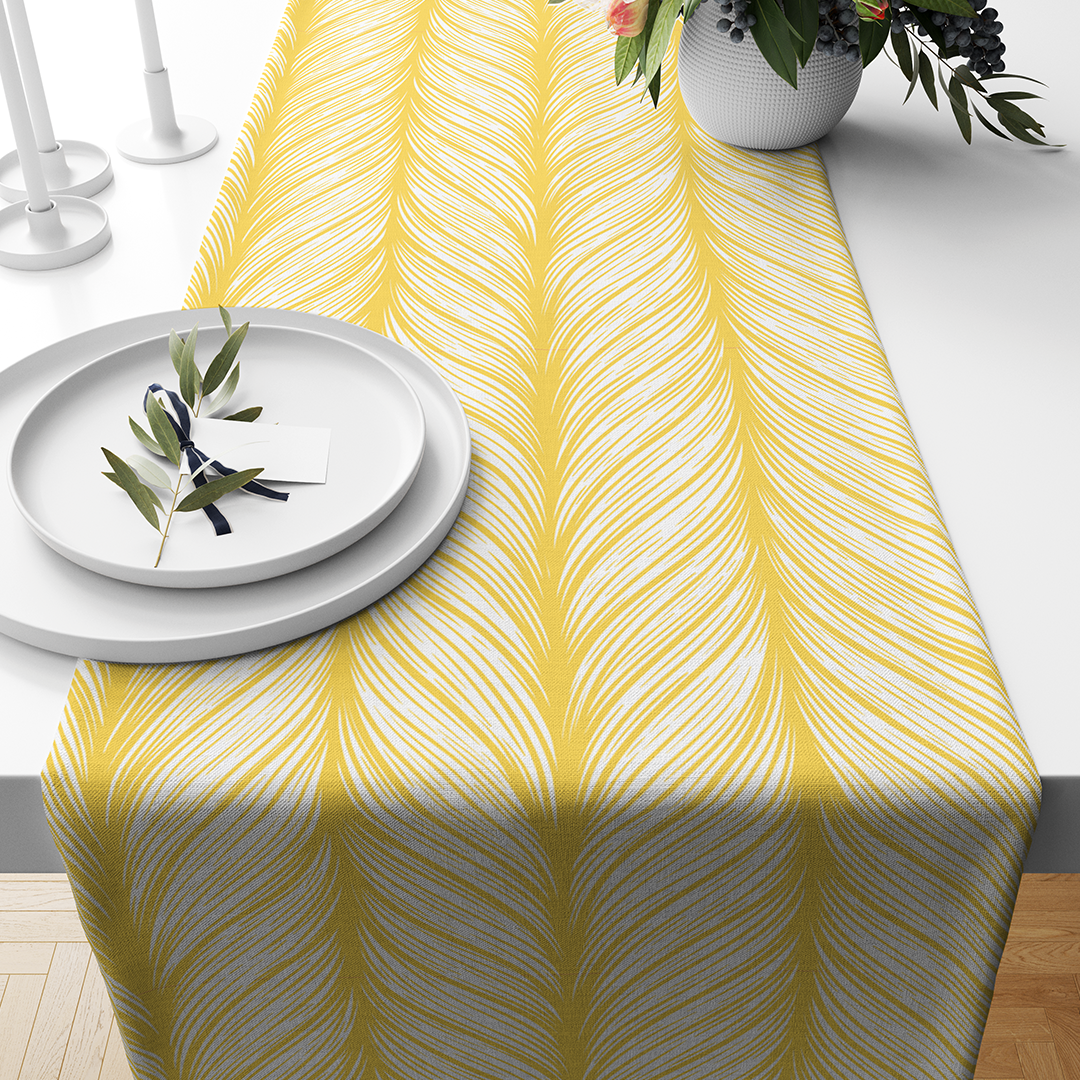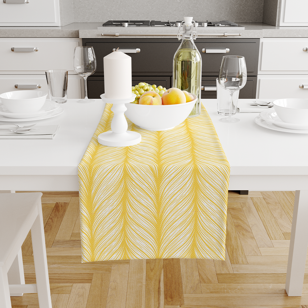 Chemins de table - Motif dessiné à la main avec ornement de tissage décoratif stylisé texture universelle neutre abstraite - Jaune Tan - M10132