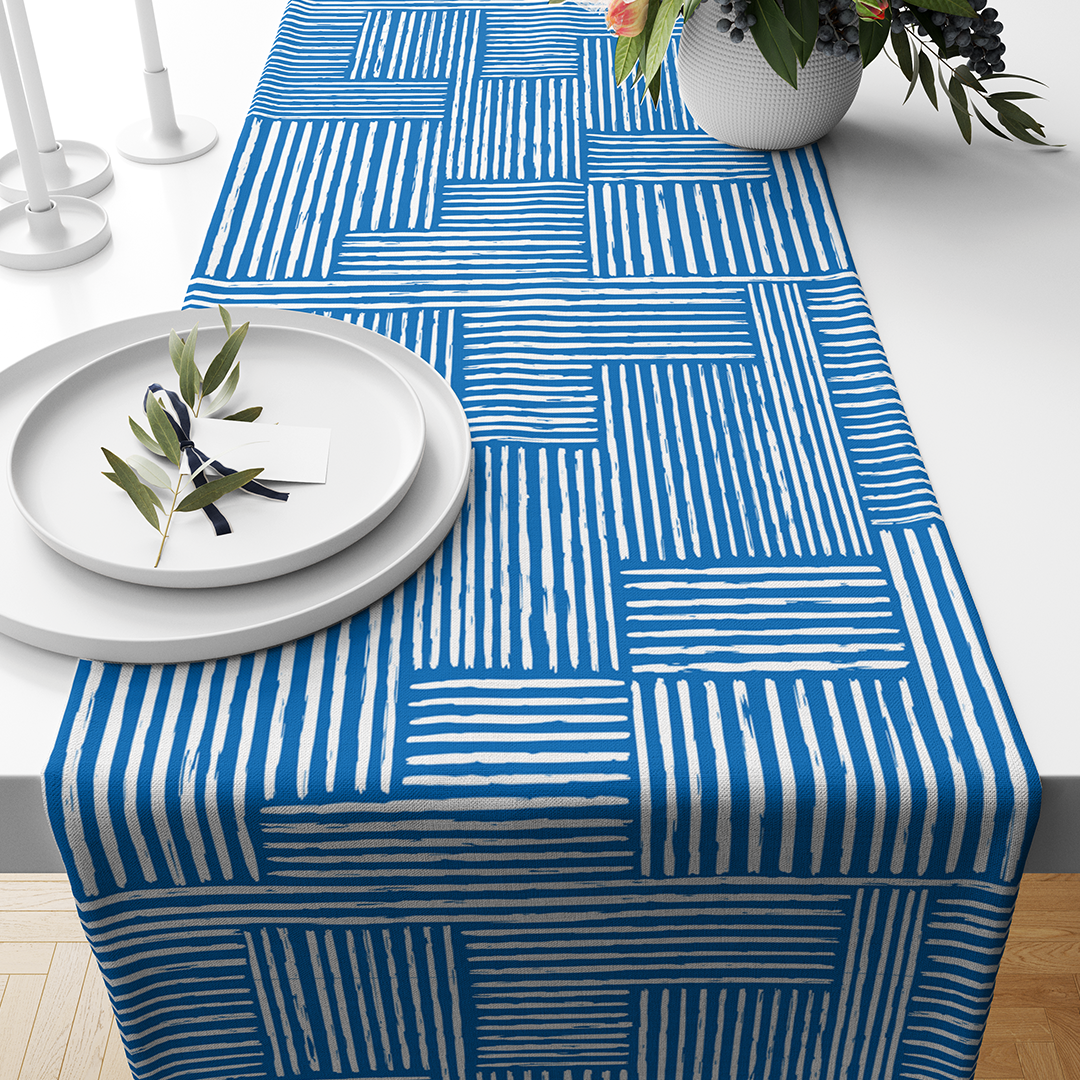 Chemins de table - Formes de trait de pinceau de ligne élégante minimale et ligne dans des couleurs nude Bleu et blanc -m10023