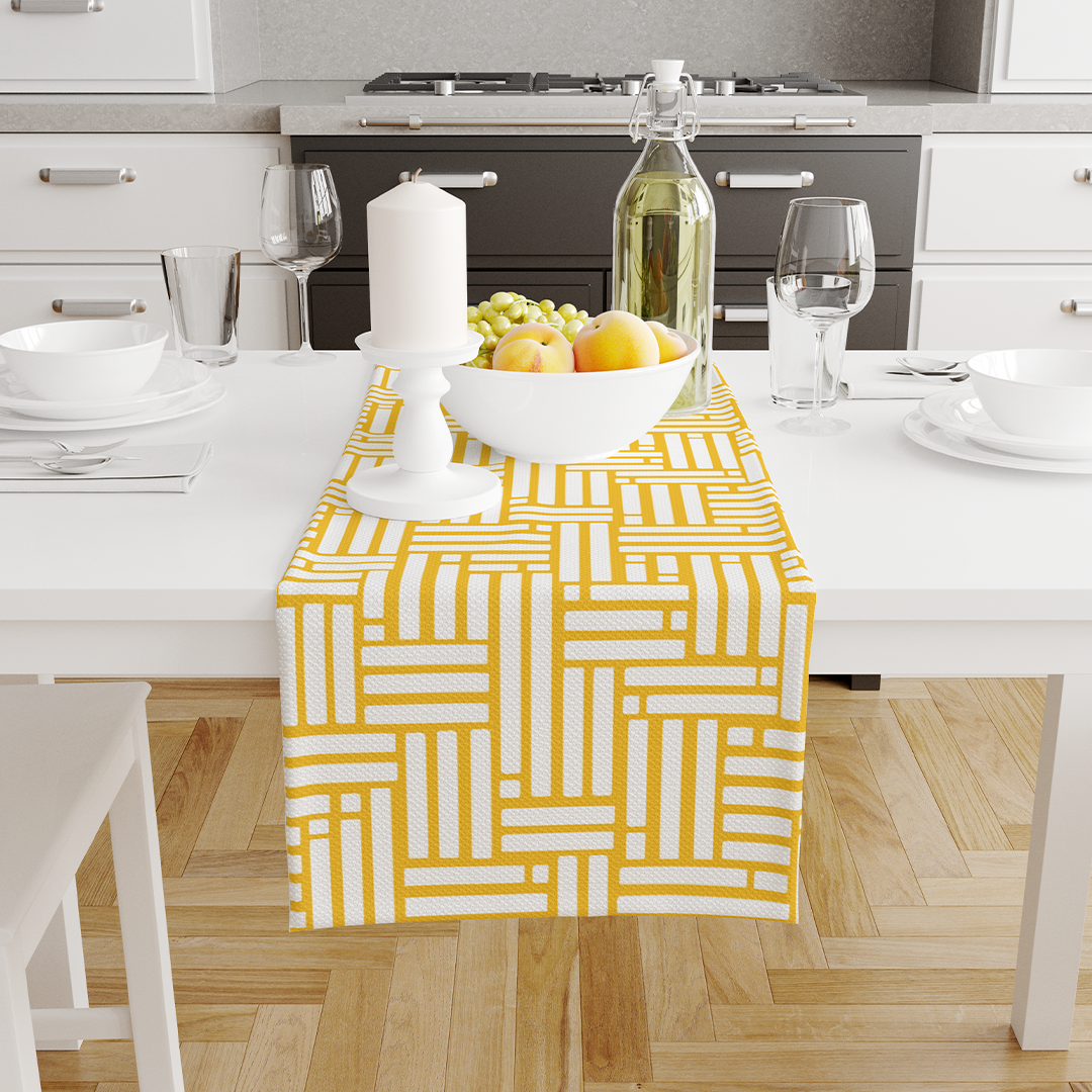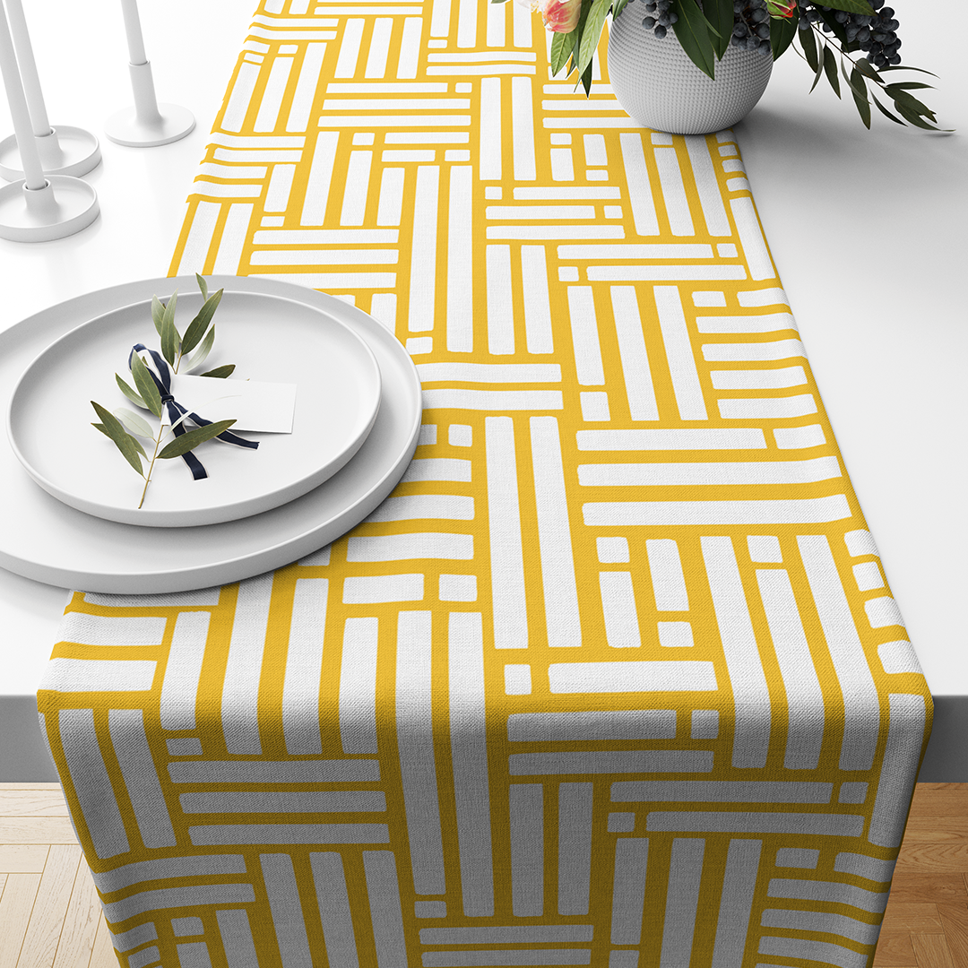 Chemins de table - Formes de trait de pinceau de ligne élégante minimale et ligne dans des couleurs nude Deep Yellow et blanc -m10018