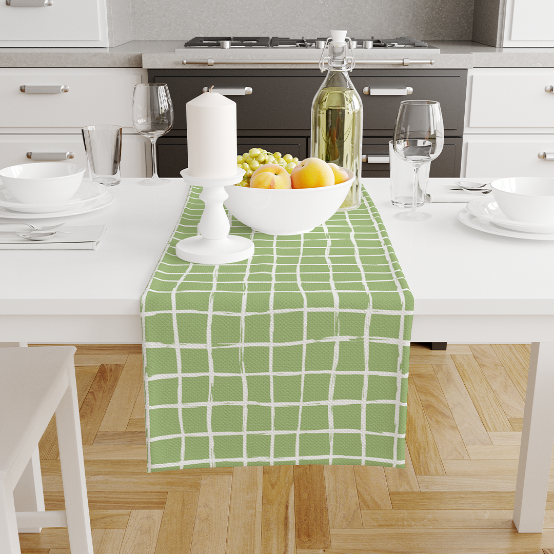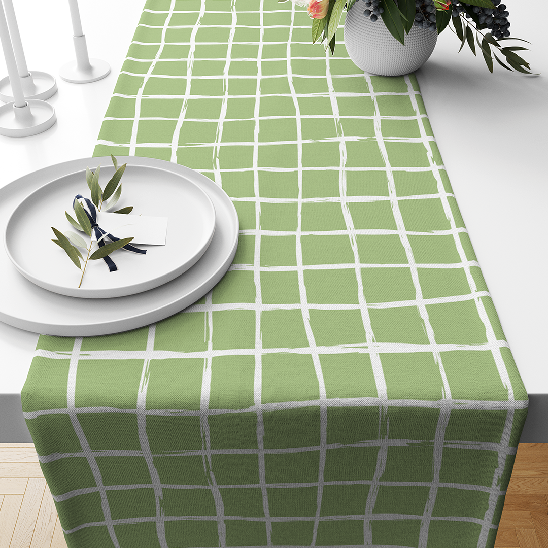 Chemins de table - Formes de trait de pinceau de ligne élégante minimale et ligne dans des couleurs nude vert et blanc -m10019