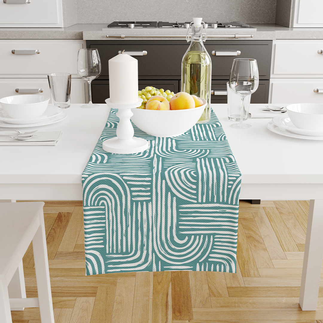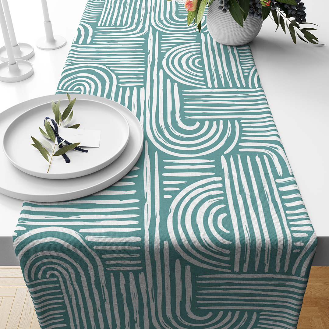 Chemins de table - Formes de trait de pinceau de ligne élégante minimale et ligne dans des couleurs nude Turquoise et blanc -m10014
