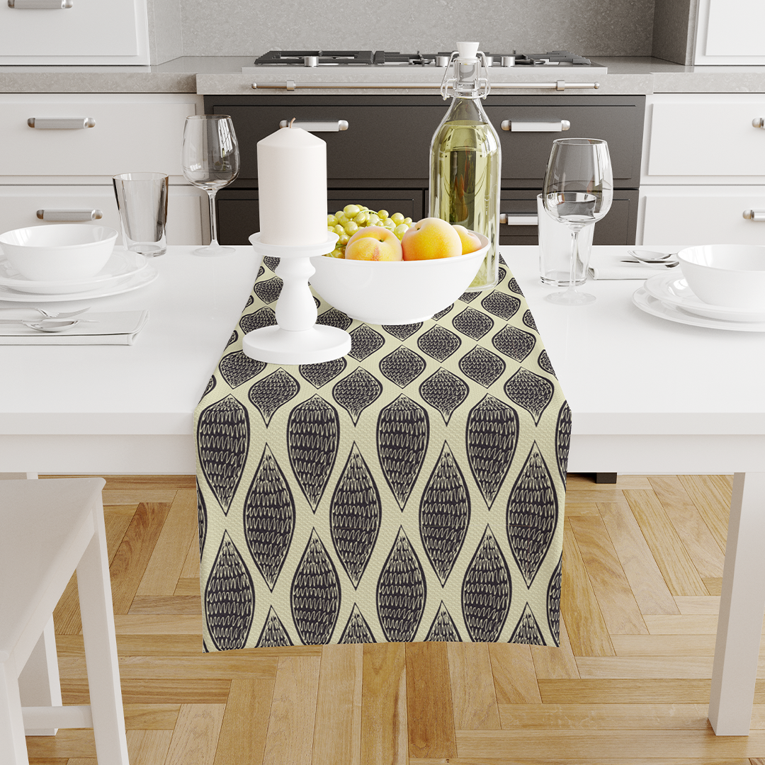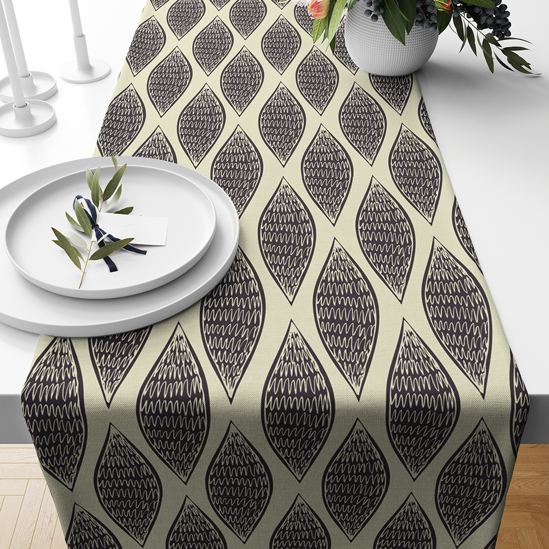 Chemins de table - motifs abstraits sans couture - Blanc antique - noir - crémeux - M10121