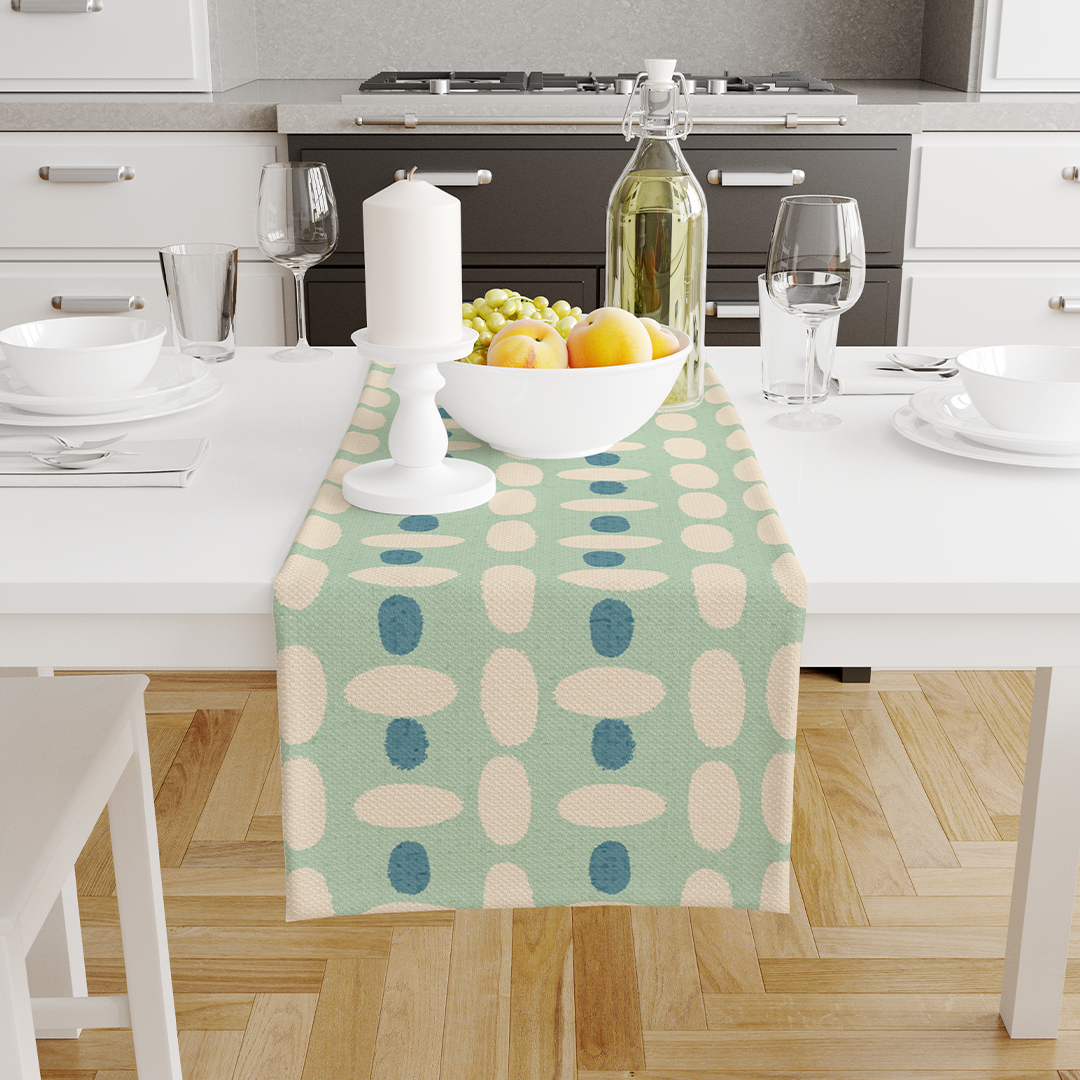 Chemins de table - Motif sans couture fond blanc antique - vert pixie - bleu hippie -m10073