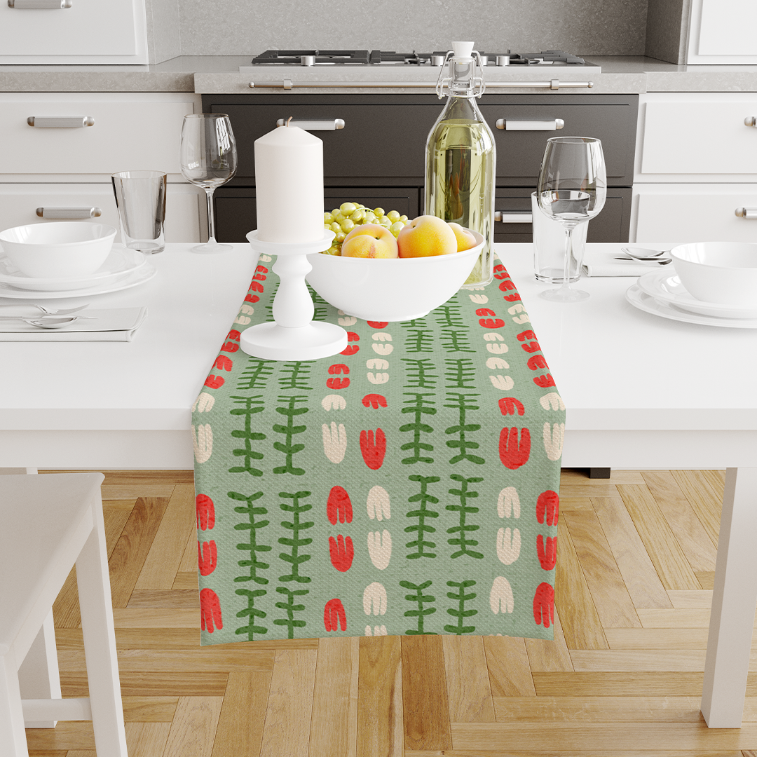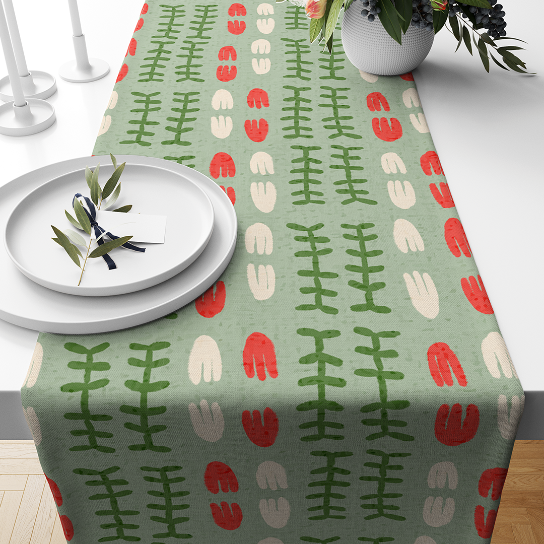 • Tous les chemins de table sont conçus par des artistes indépendants, du monde entier, et imprimés et cousus en Turquie.