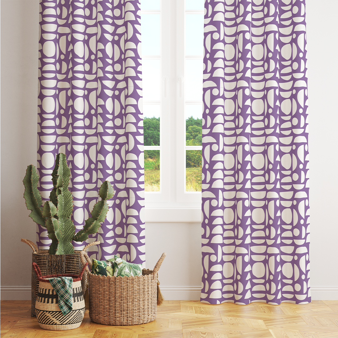 ფარდა - მინიმალური ელეგანტური ხაზის ფუნჯის შტრიხების ფორმები და ხაზი შიშველ ფერებში იასამნისფერი და თეთრი -m10020