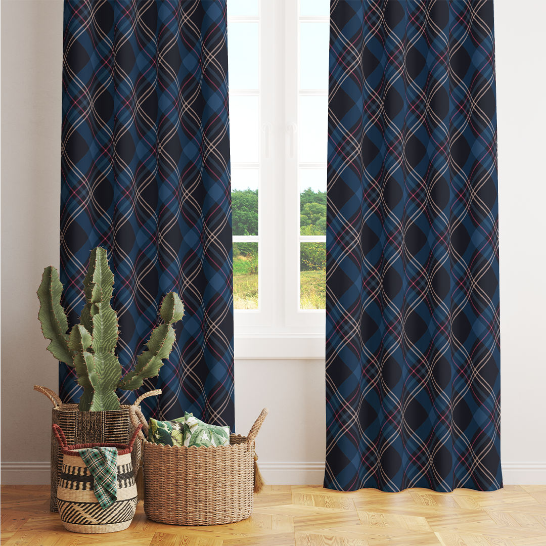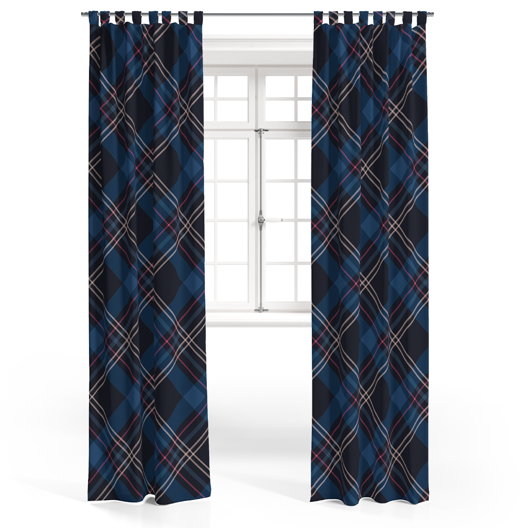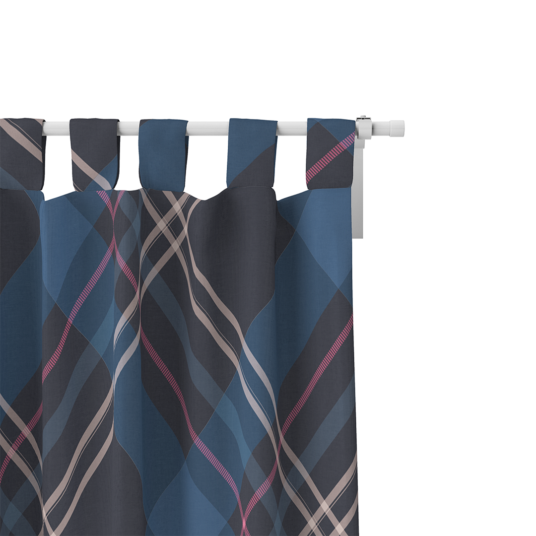 ფარდა - მუქი ლურჯი ტარტანის უნაკერო ნიმუში - m10091