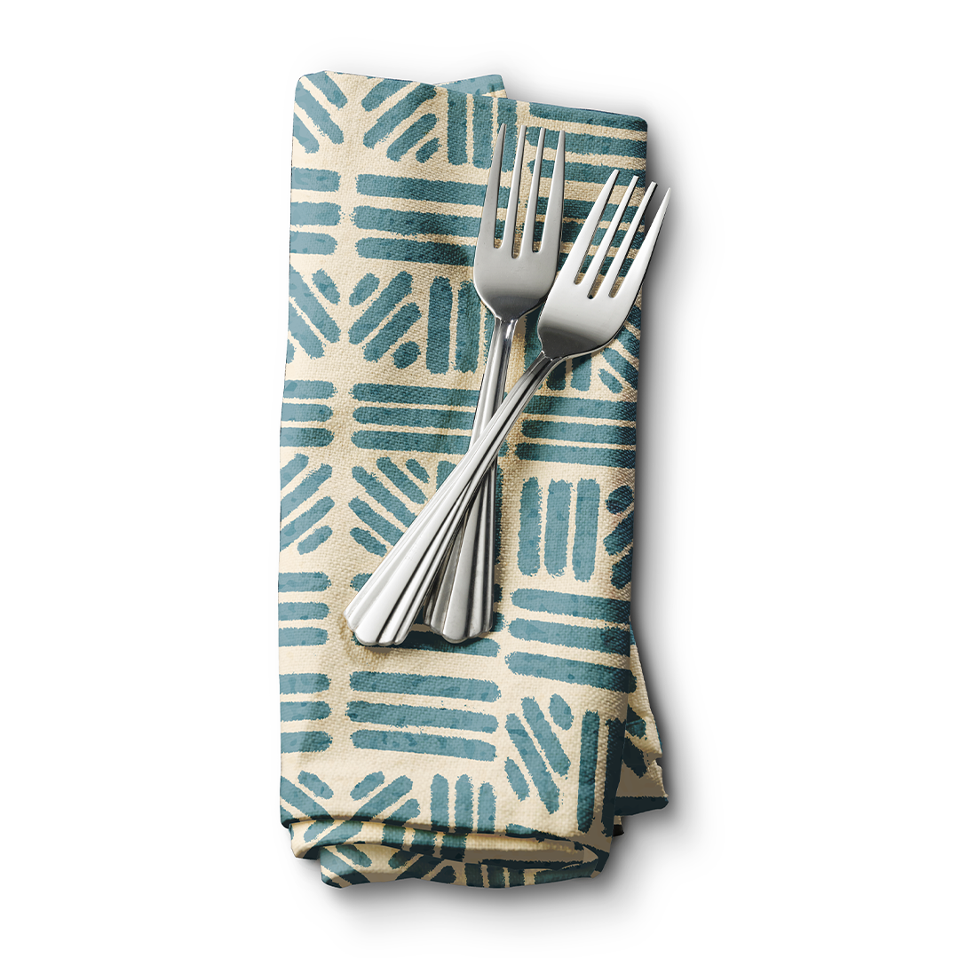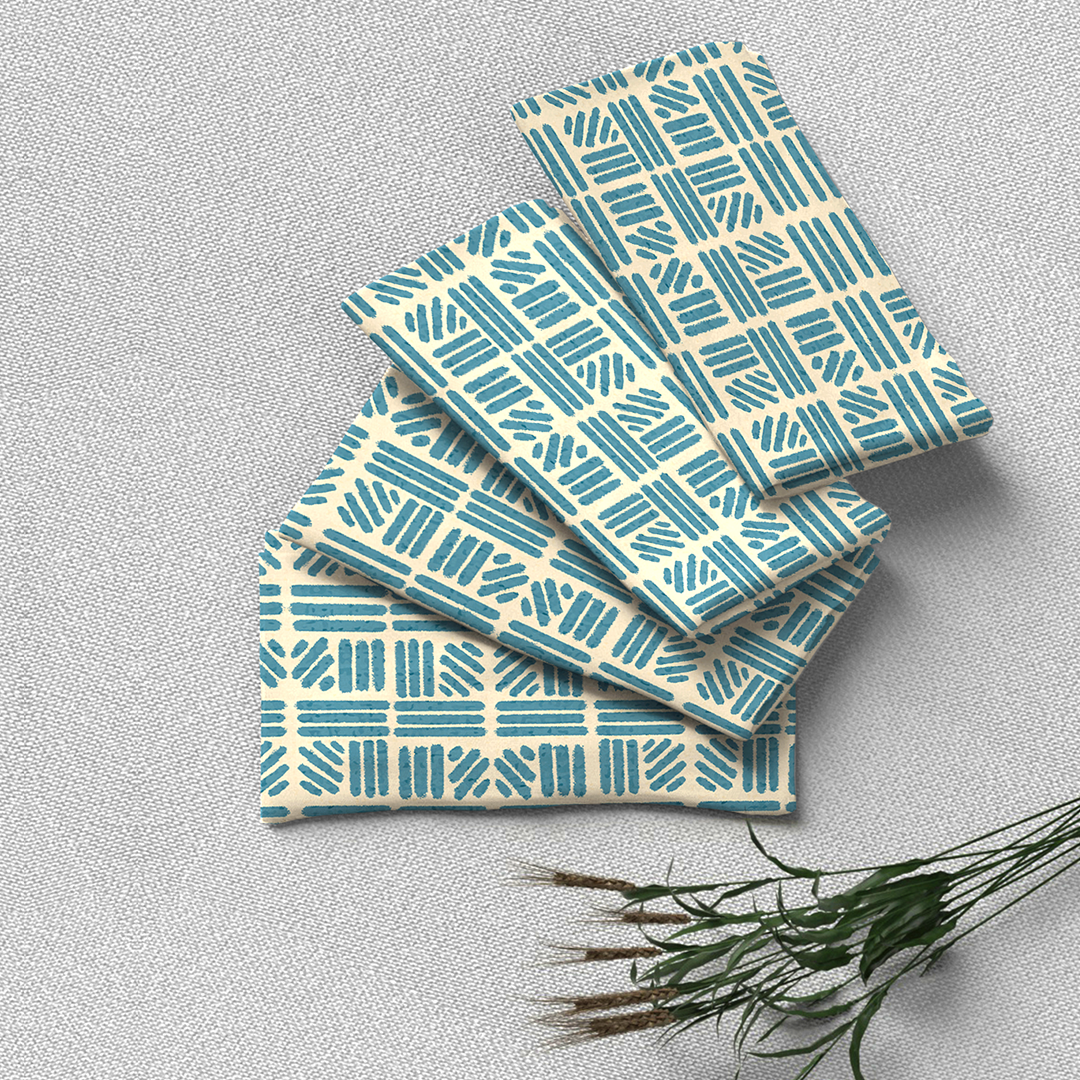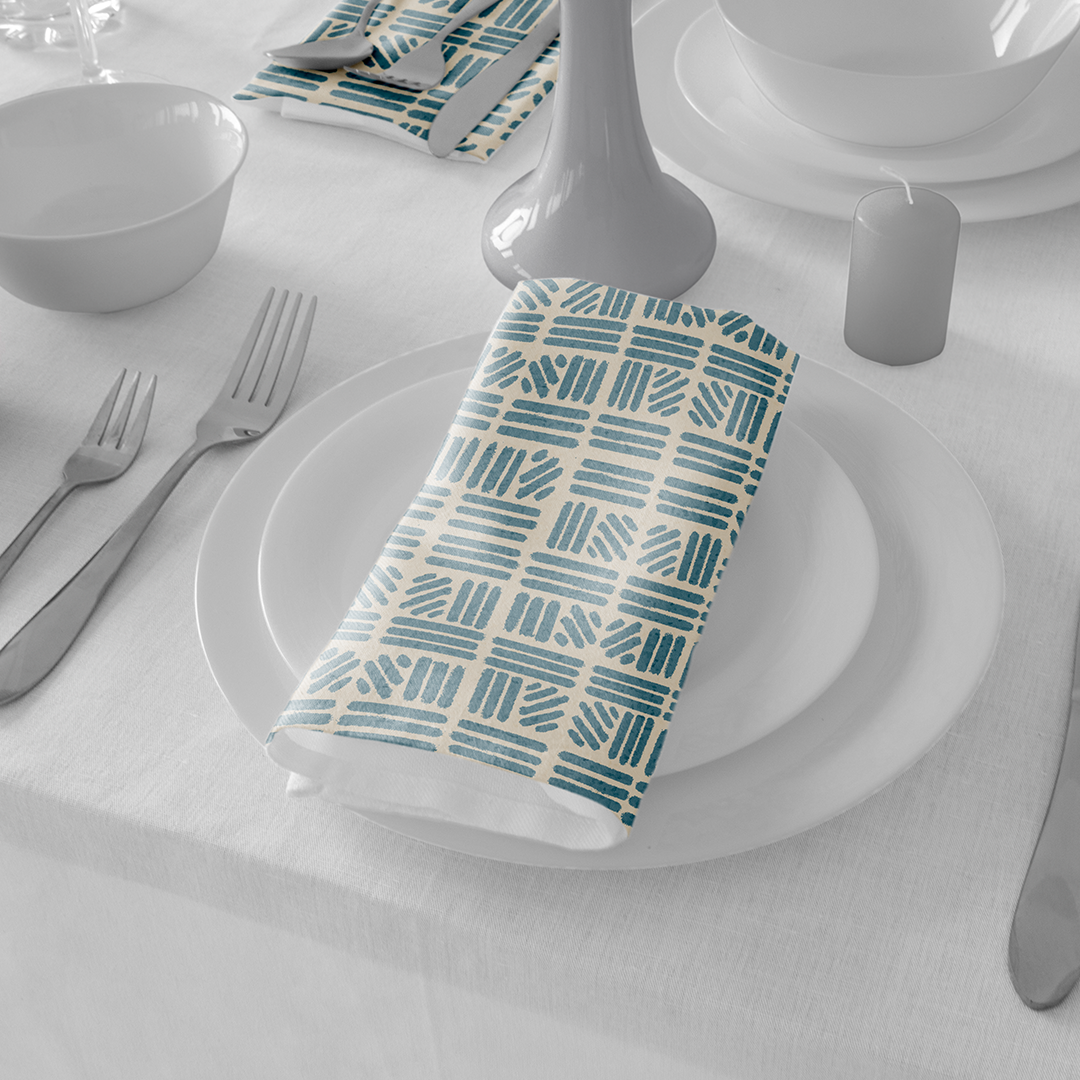 სადილის ხელსახოცები - უნაკერო ნიმუში ფონი ანტიკვარული თეთრი - ჰიპური ლურჯი -m10074