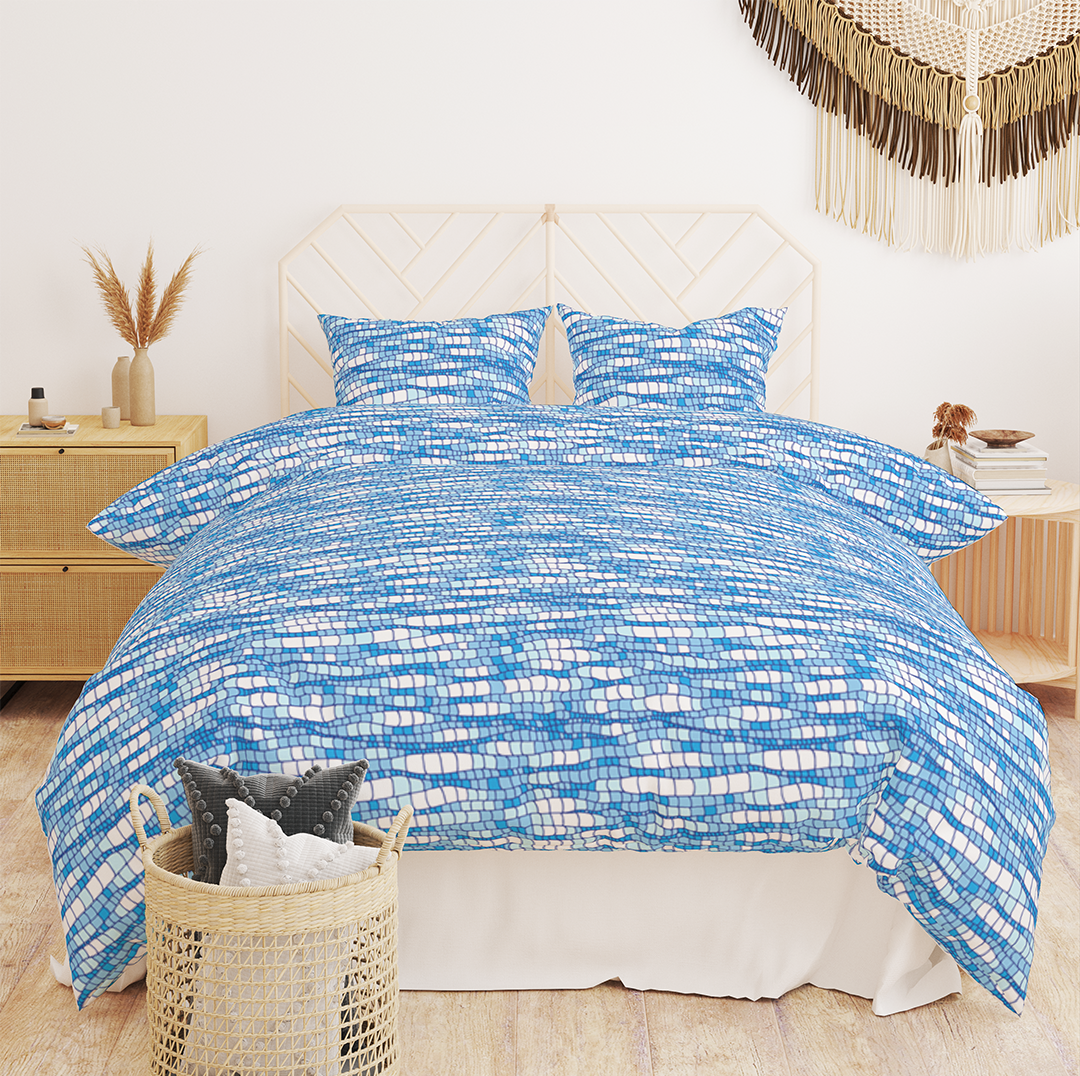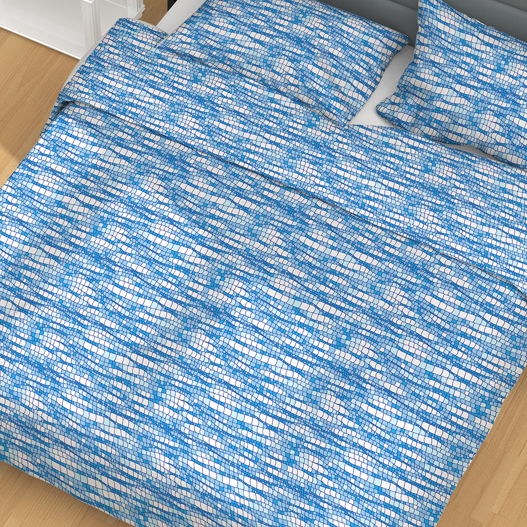 დუვეტის გადასაფარებლები - აბსტრაქტული უნაკერო ნიმუში ლურჯი ტალღების ტექსტურირებული წყლის ზედაპირის დეკორატიული მოზაიკის დიზაინი - M10107