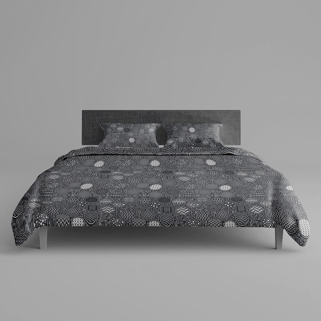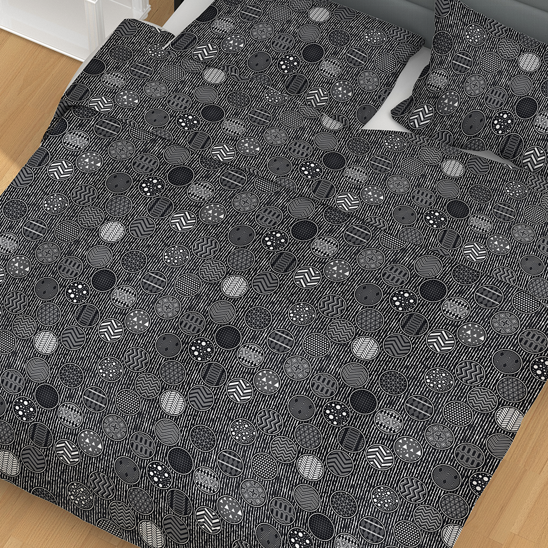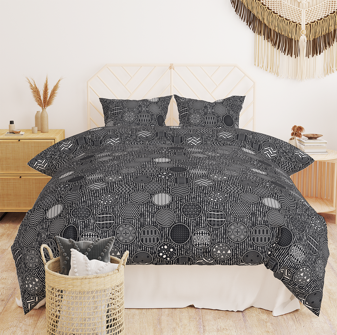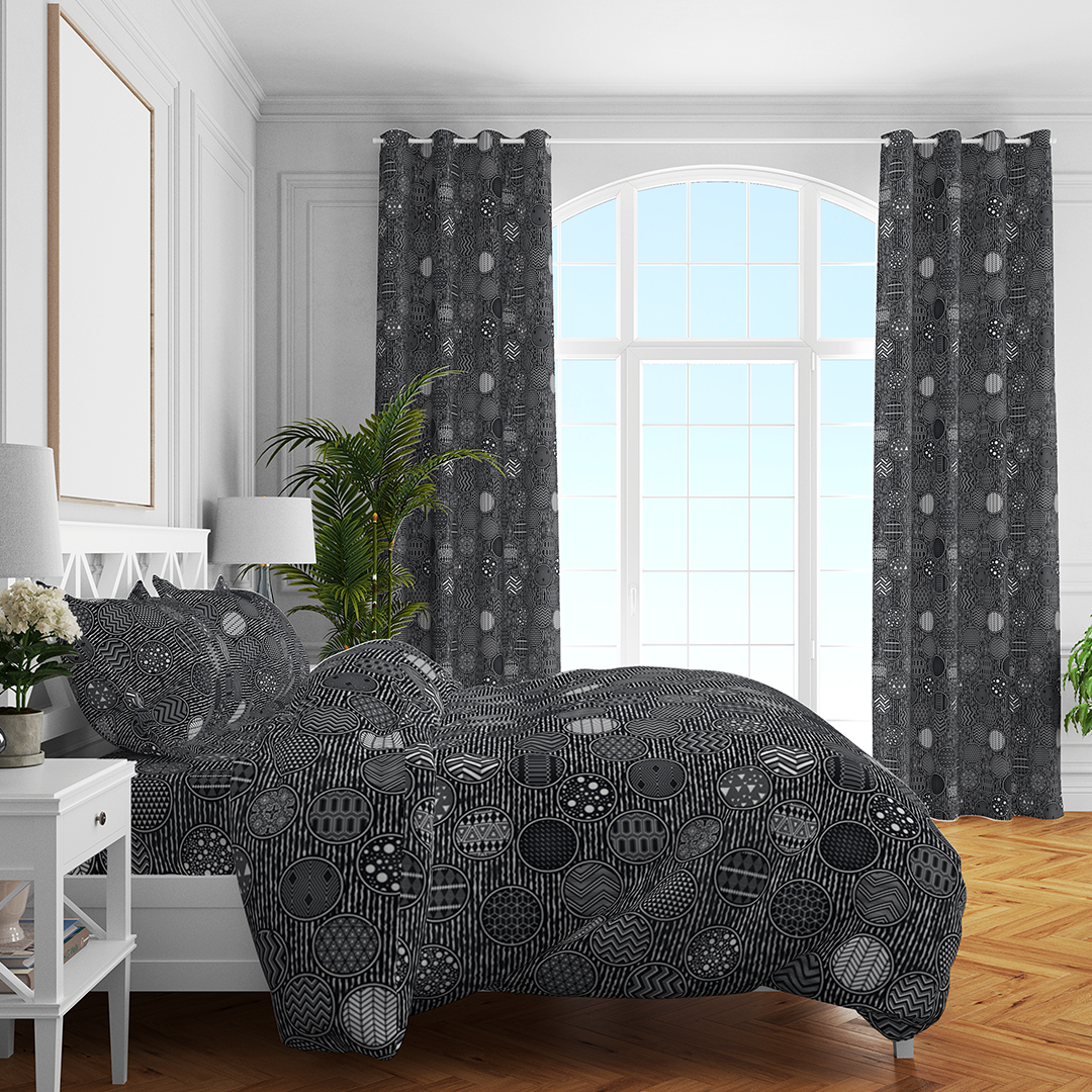 დუვეტის გადასაფარებლები - ეთნიკური ყვავილების უნაკერო ნიმუში მანდალას შავი ფონით -m10045