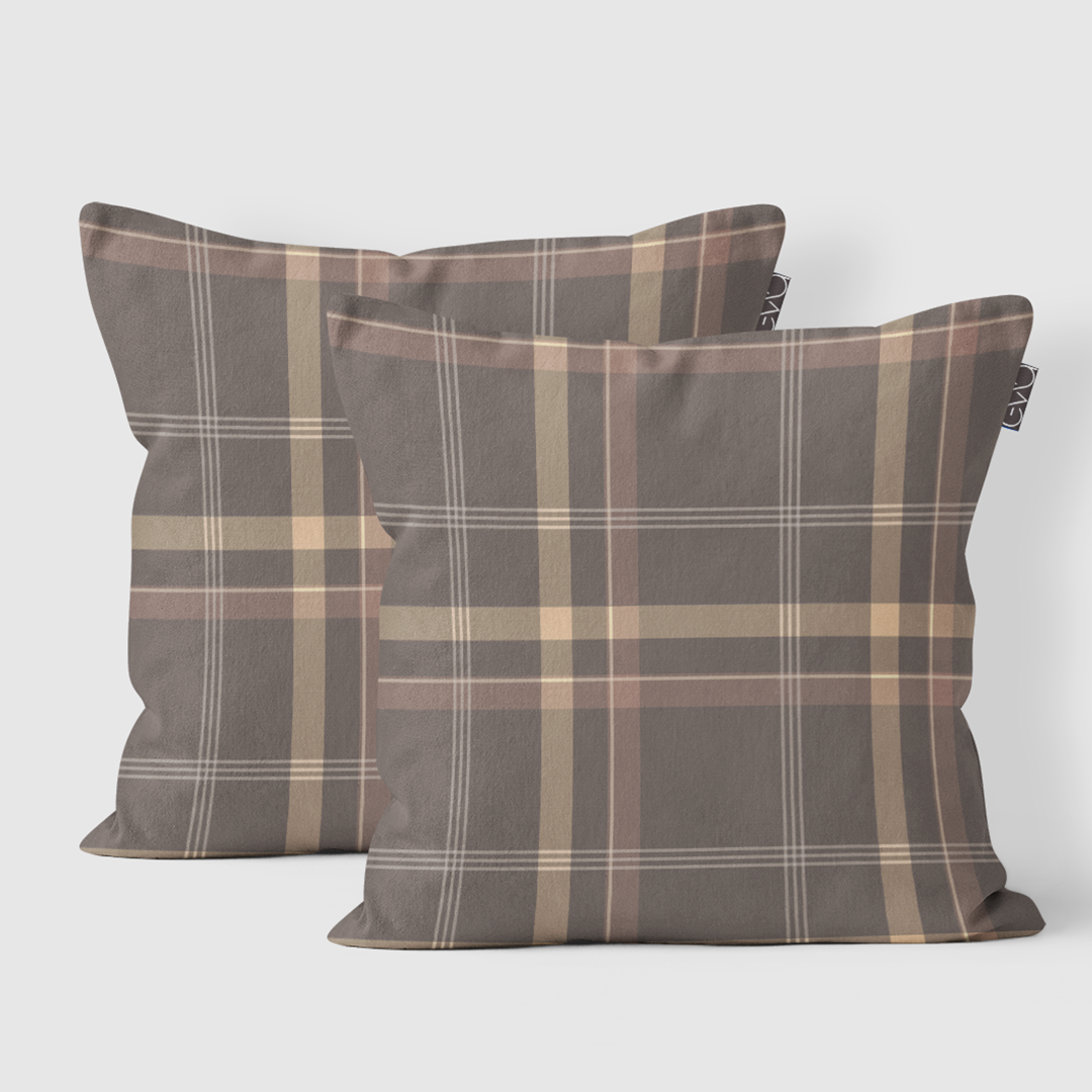 ევრო ბალიშის შამები - ყავისფერი პლედი უნაკერო ნიმუში - m10084