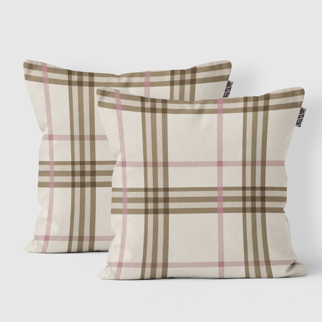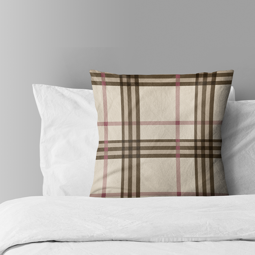 ევრო ბალიშის შამსი - ყავისფერი პლედი უნაკერო ნიმუში - m10087