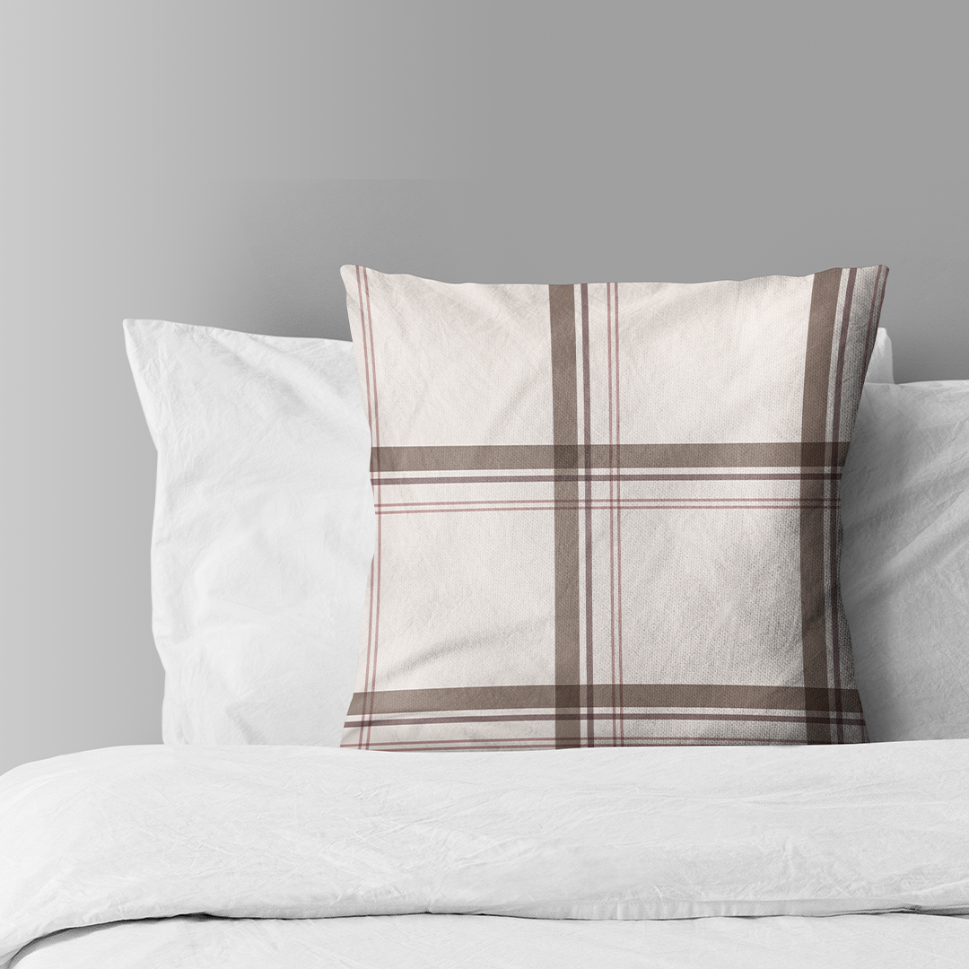 ევრო ბალიშის შამსი - ყავისფერი პლედი უნაკერო ნიმუში - m10089