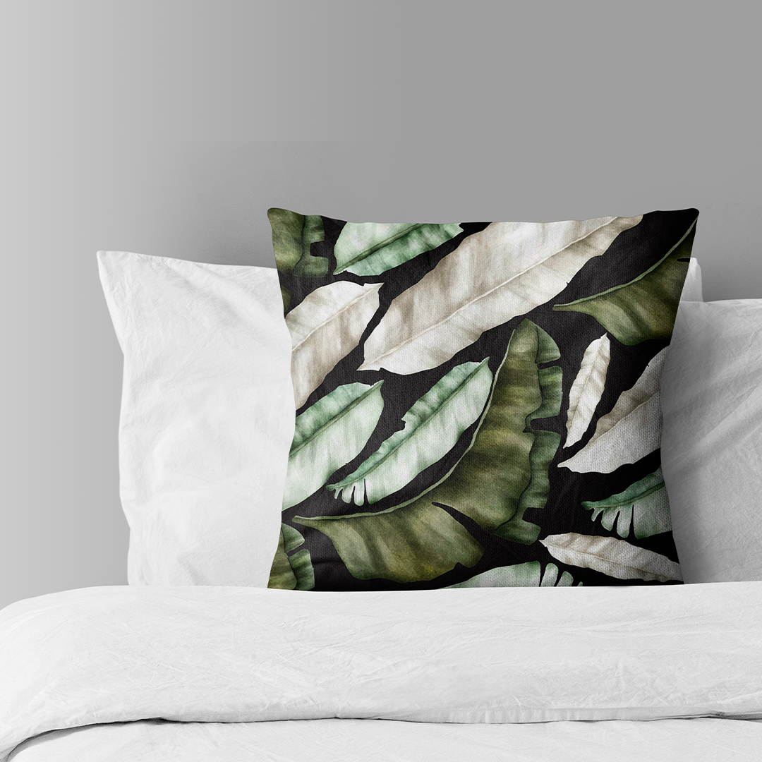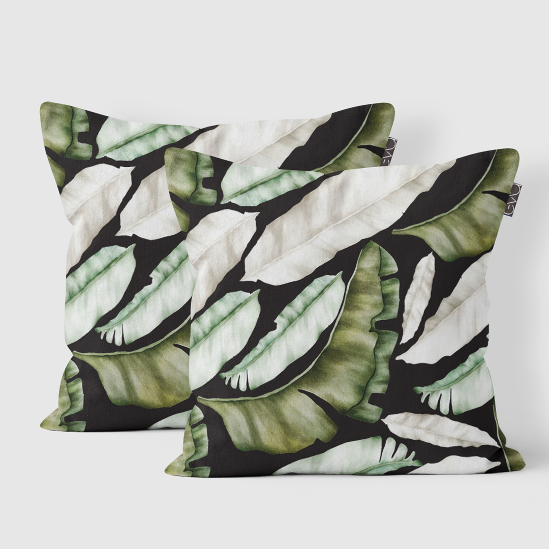 Euro Pillow Shams - ელეგანტური უნაკერო ტროპიკული ფოთლების დიზაინი - მწვანე - თეთრი - M10117