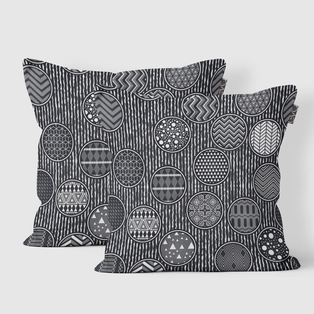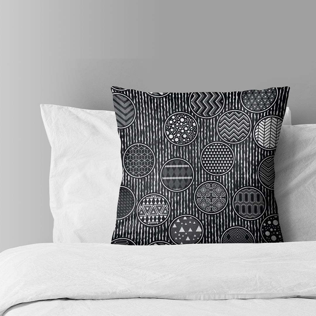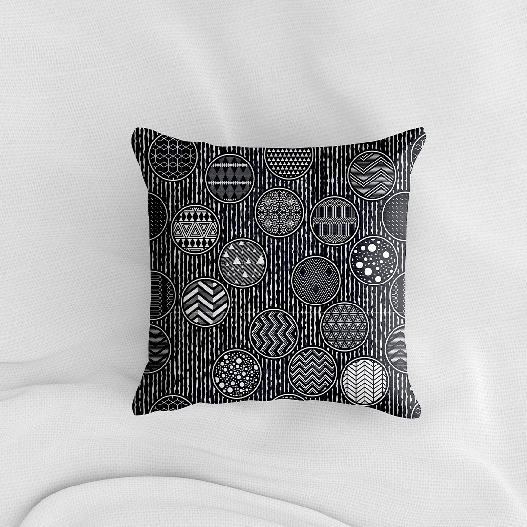 Euro Pillow Shams - ეთნიკური ყვავილოვანი უნაკერო ნიმუში მანდალას შავი ფონით -m10045