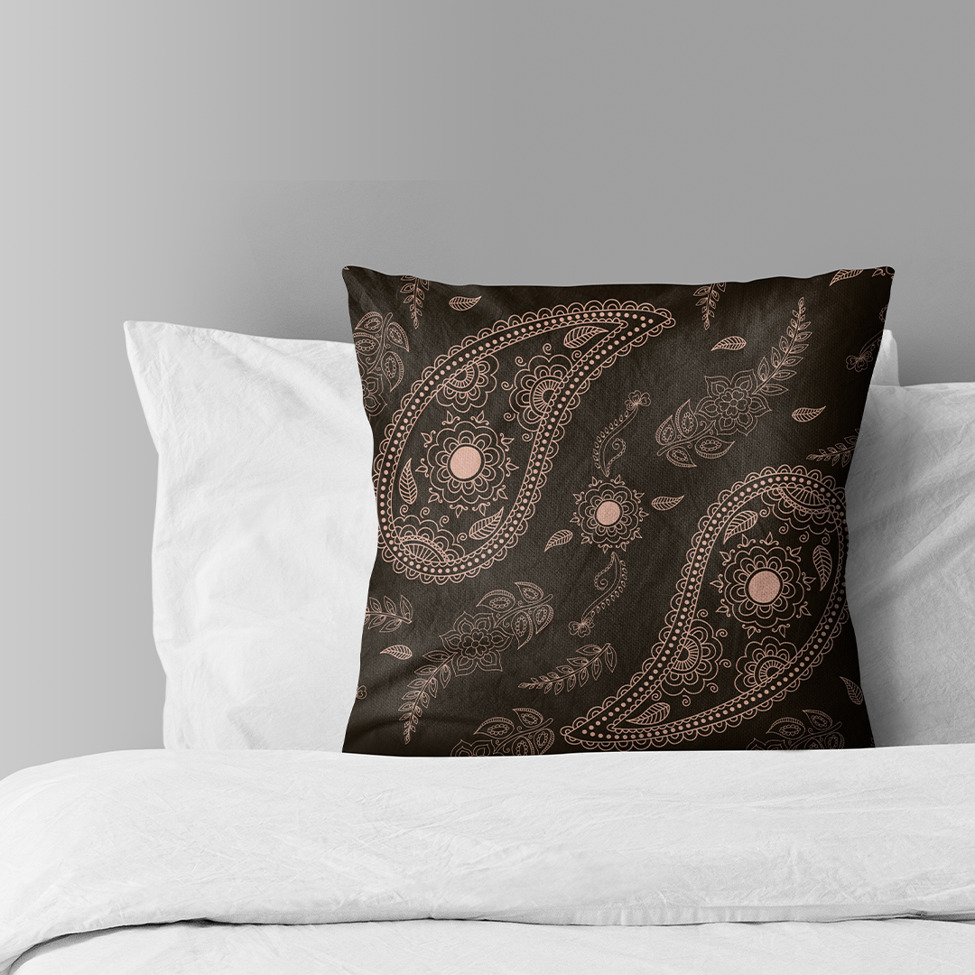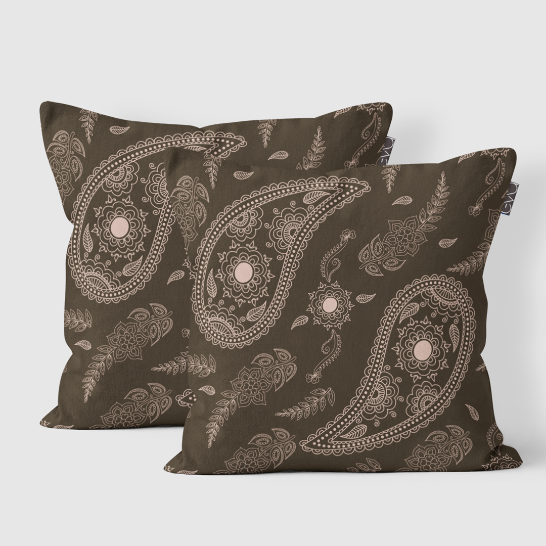 Euro Pillow Shams - ვექტორული ყვავილების უნაკერო ნიმუში ელემენტი. მეჰენდის და პეისლის ელემენტებით. ბიჟი - ყავისფერი -m10062